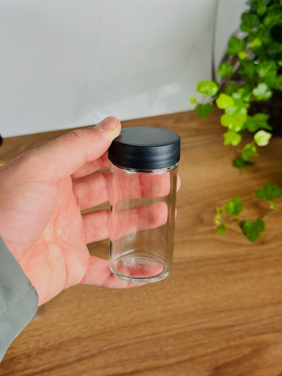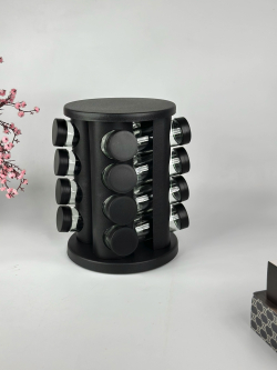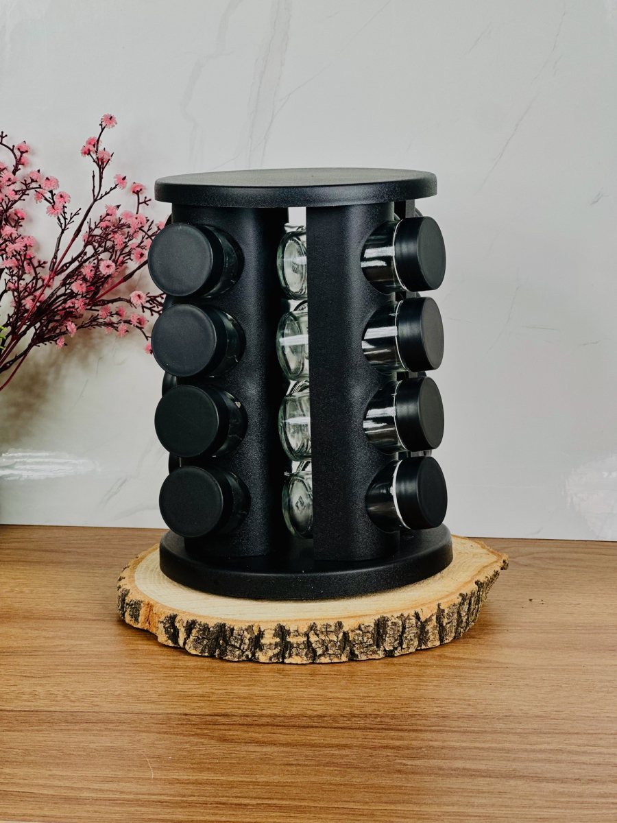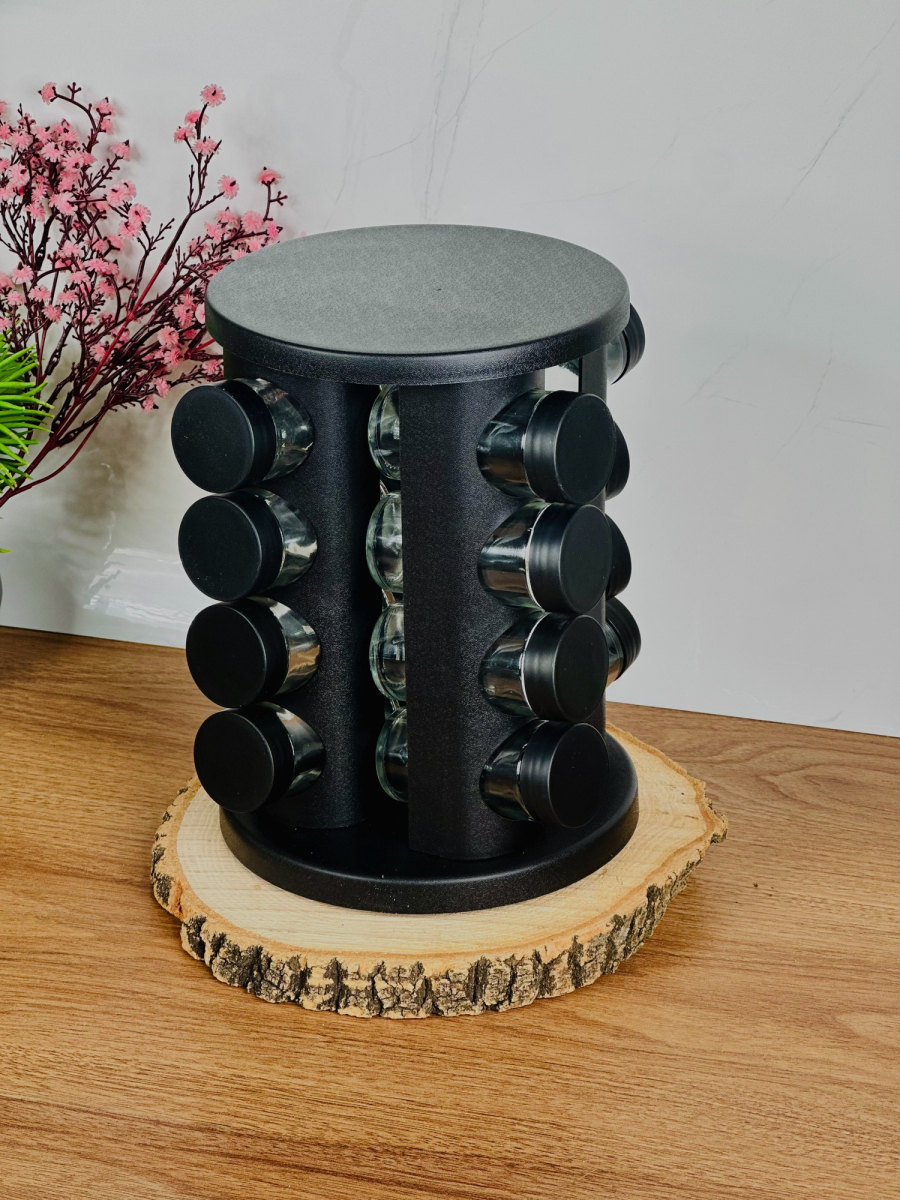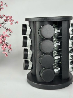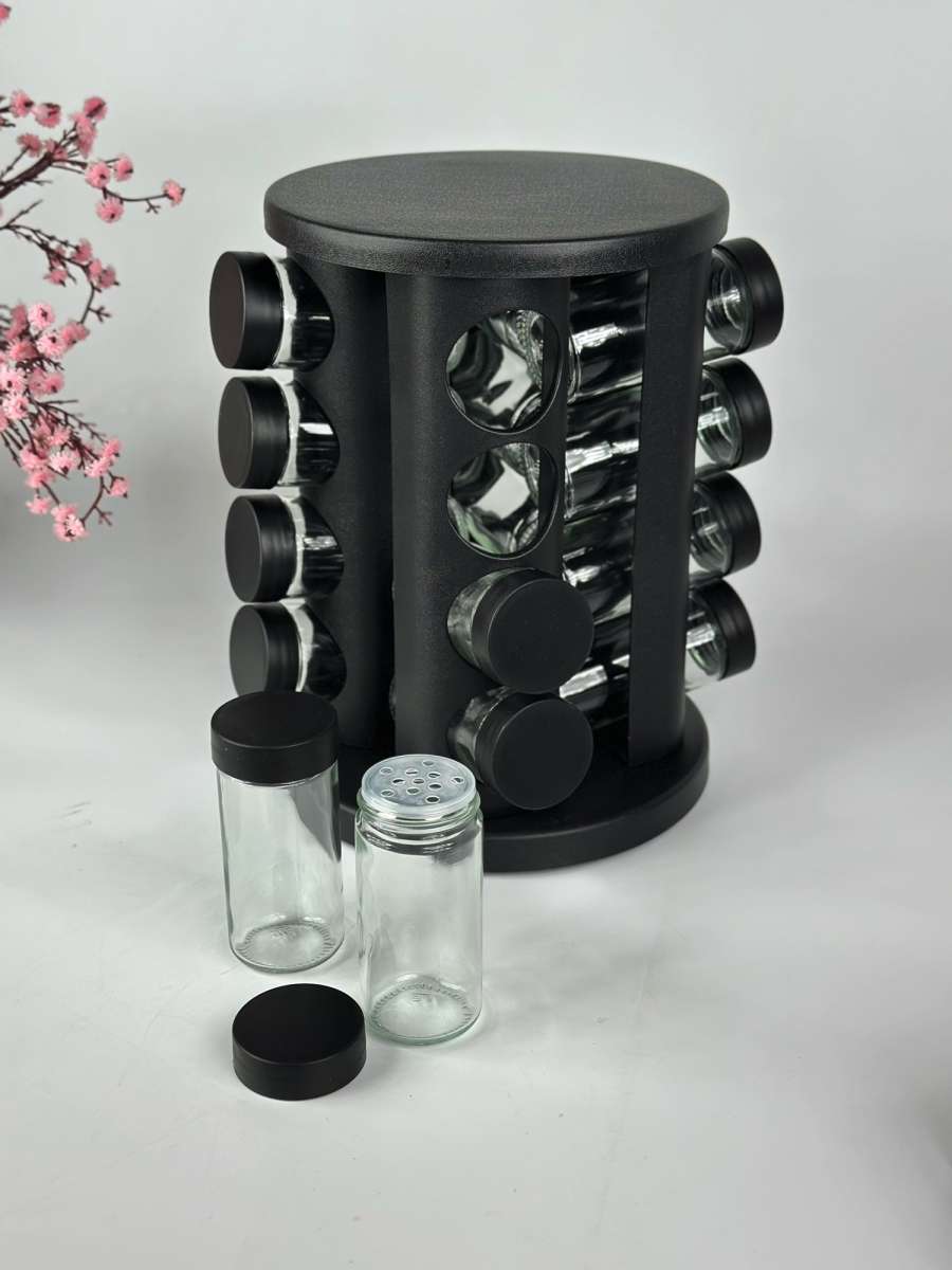 طقم توابل زجاجي 16 عدد مع قاعدة دوارة 360 درجة اسود
