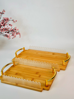طقم سكر وشايي مع قاعدة بامبو رأس تاج