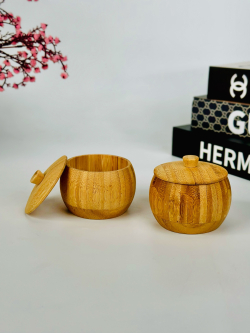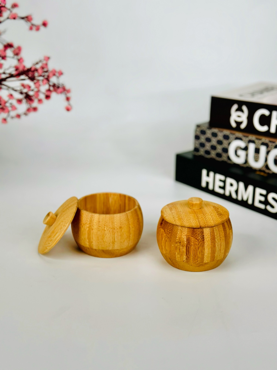 طقم سكر و شايي و قهوه سيراميك و قاعدة بامبو bh-1