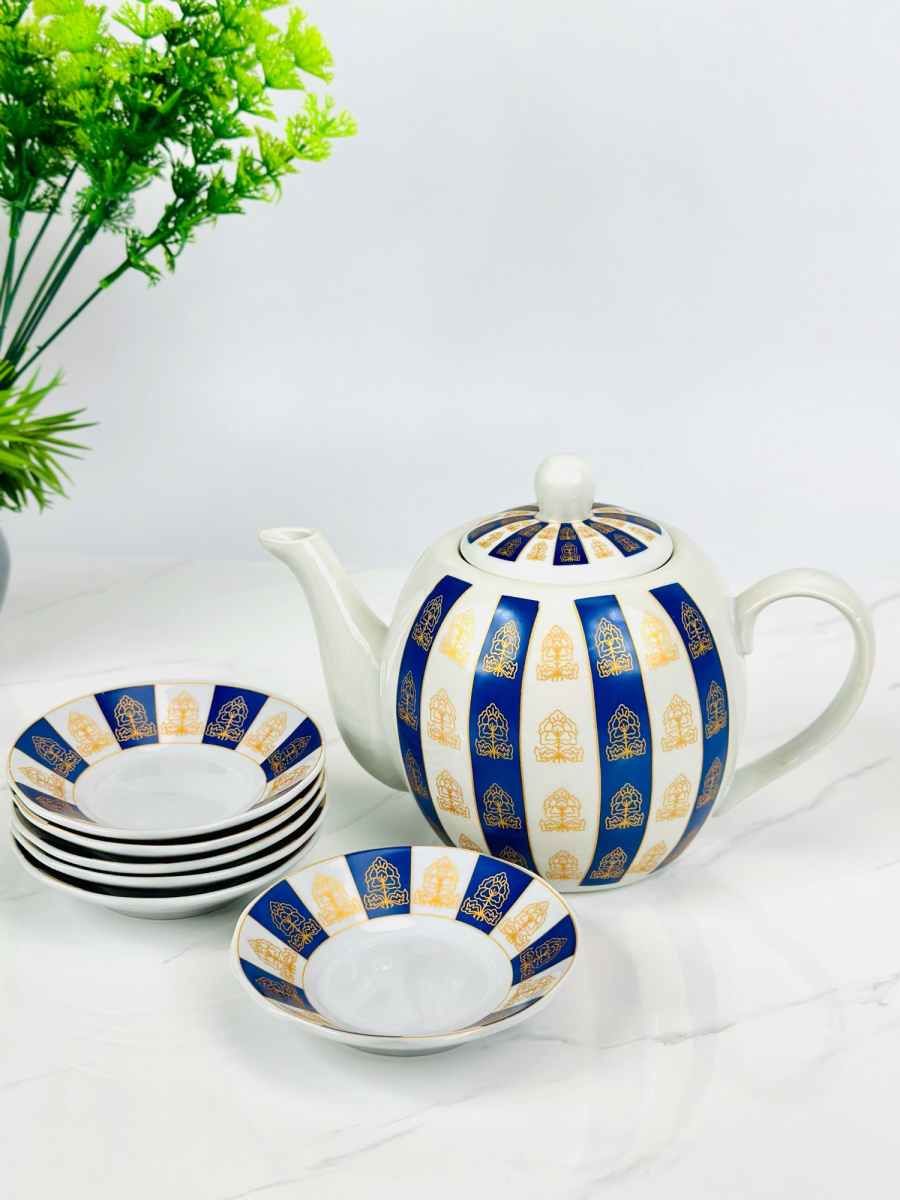 صحن استكانه سيراميك زهرة ازرق 6 عدد