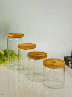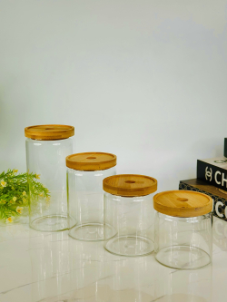 طقم سكر وشايي زجاج قبق خشبي رباعي