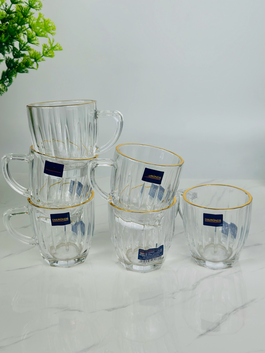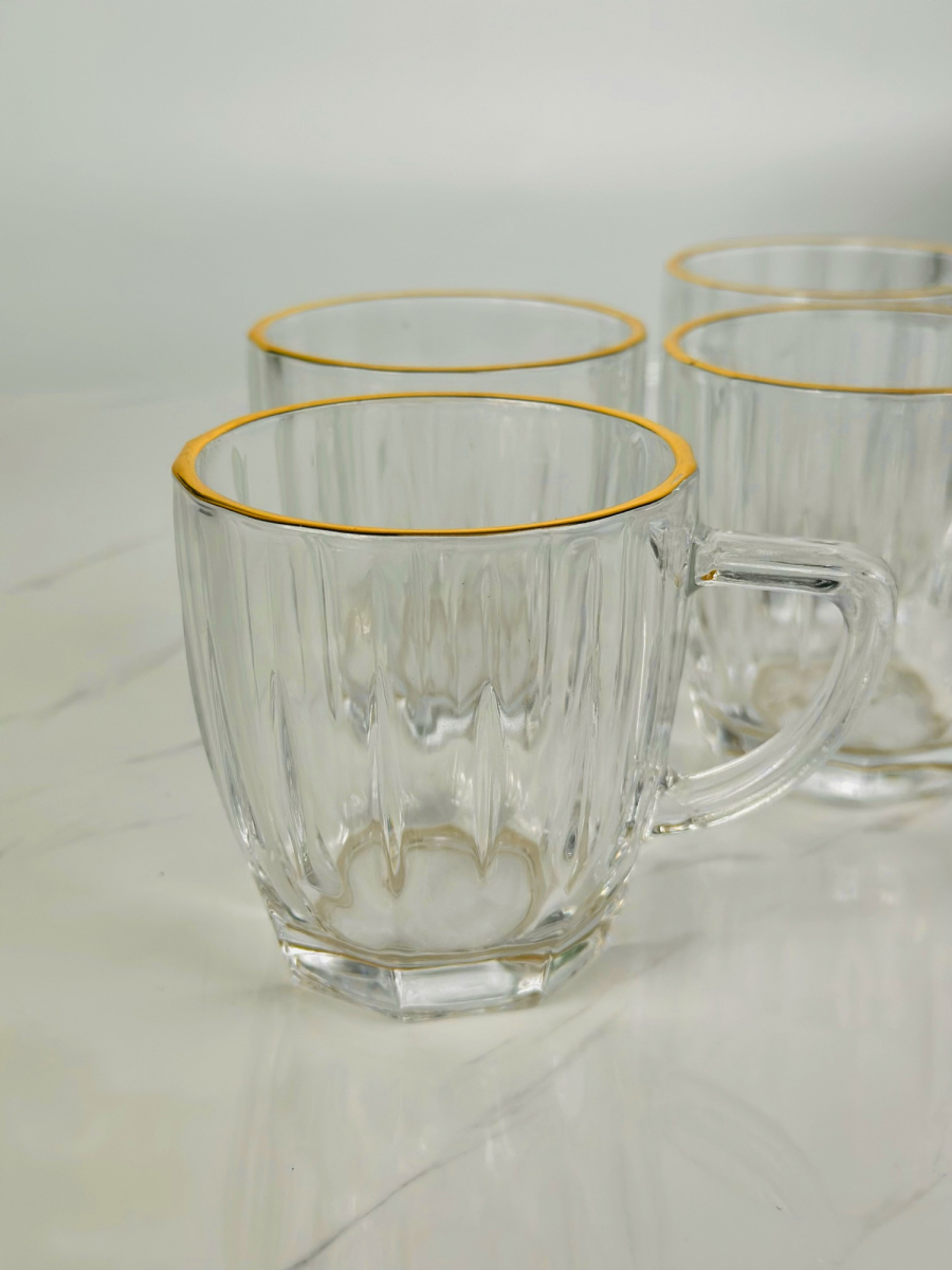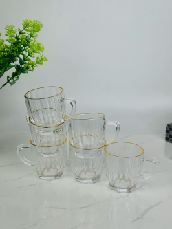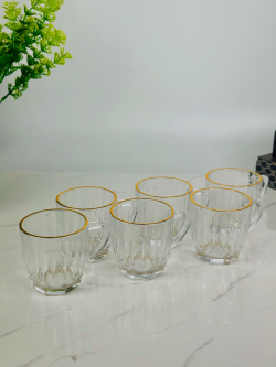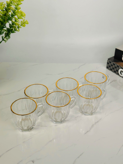 طقم 6 اكوب شايي زجاج اطار ذهبي