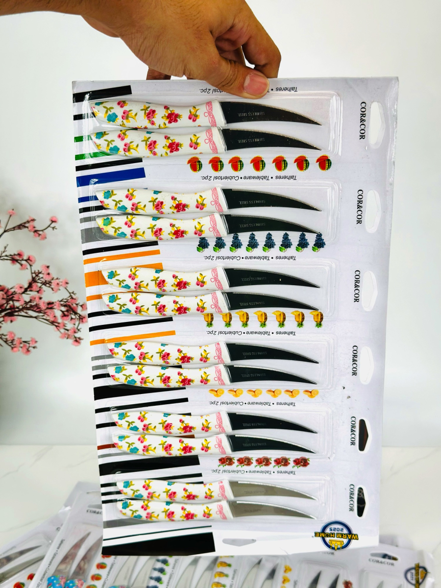 طقم سکاکین 12 عدد نقش ورد مشكل