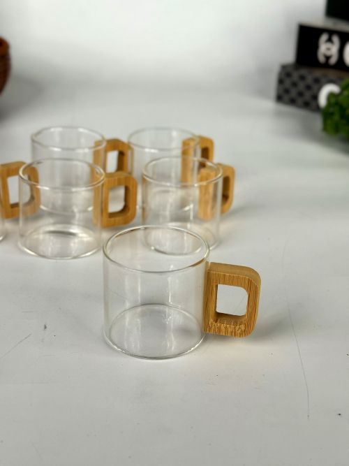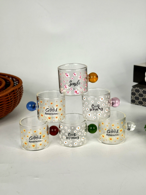 طقم 6 اكوب صغير بايريكس good morning ملون ید دائري