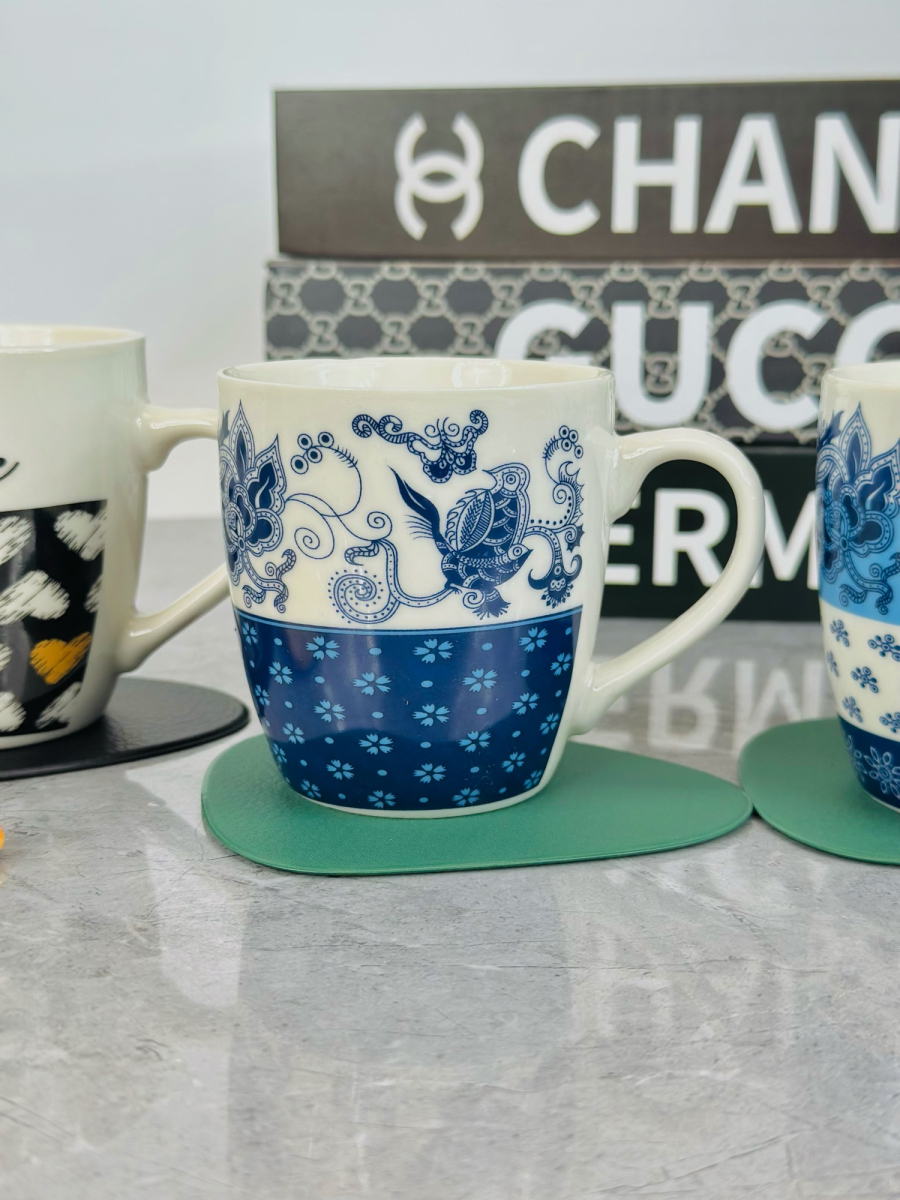 طقم 6 قطعة اكوب و صحن سیرامیک نقش ذهبي - G