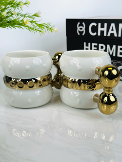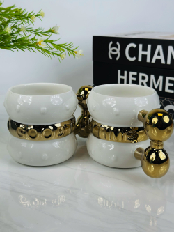 طقم 6 قطعة اكوب و صحن سیرامیک نقش ذهبي - I
