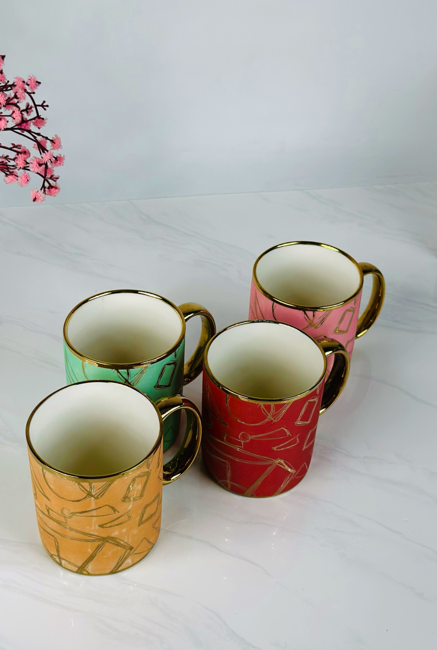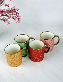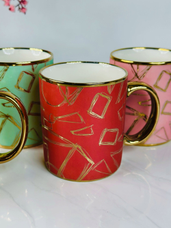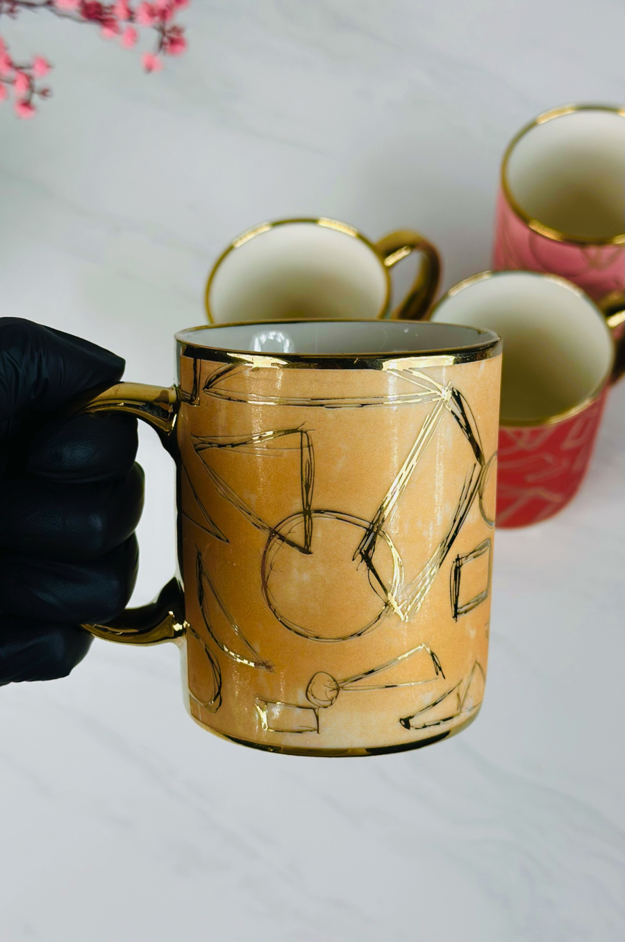 طقم 6 قطعة اكوب و صحن سیرامیک نقش ذهبي - B