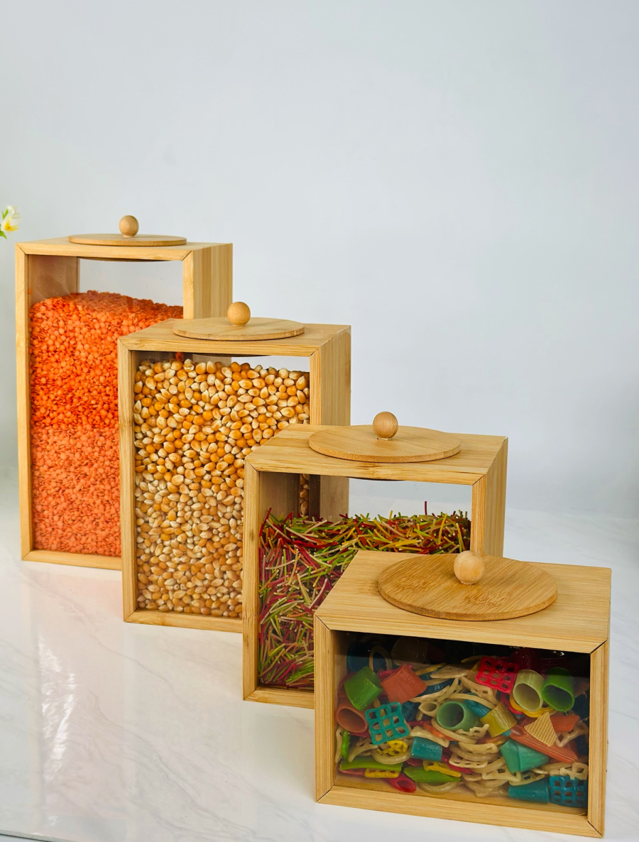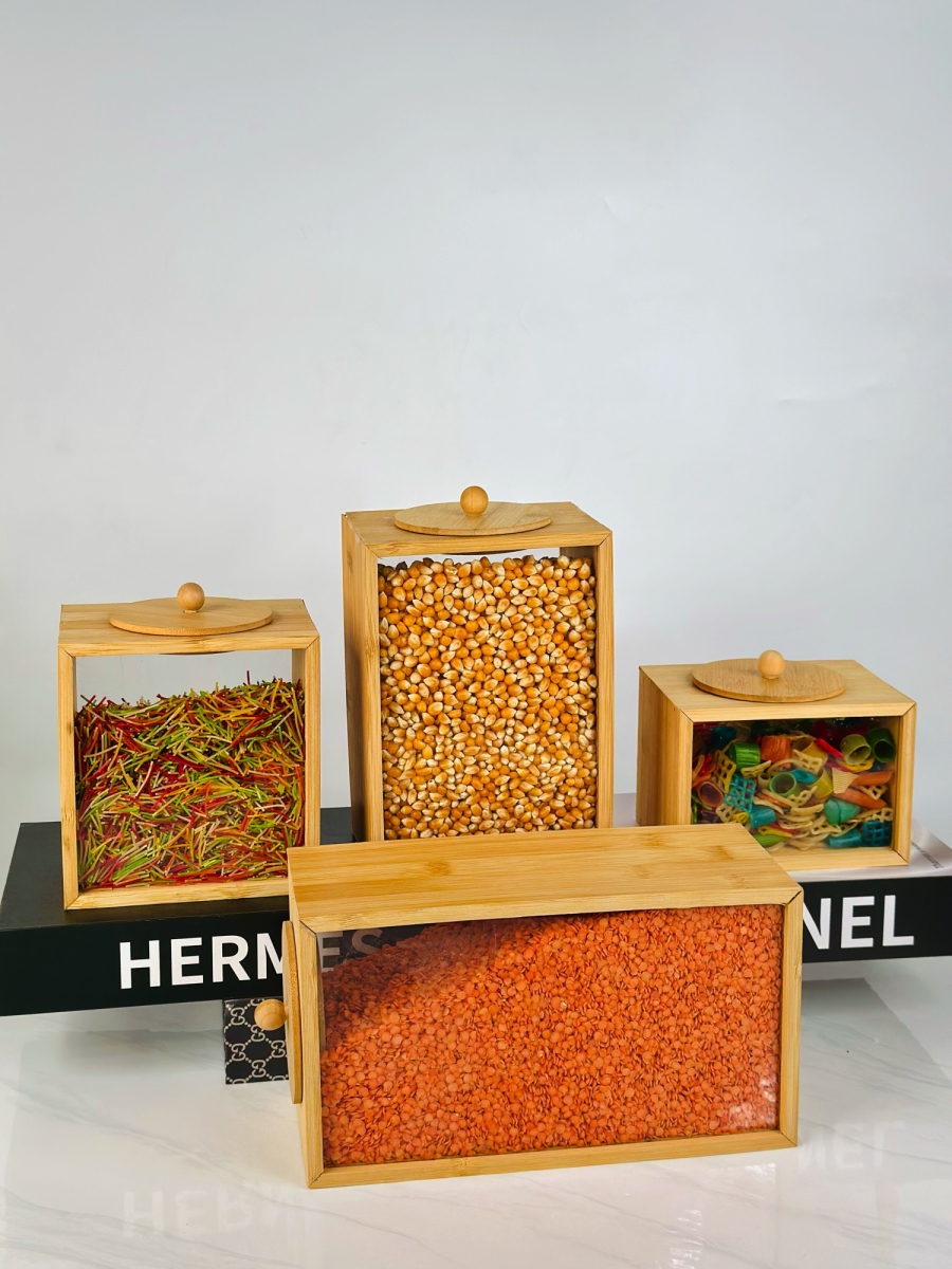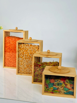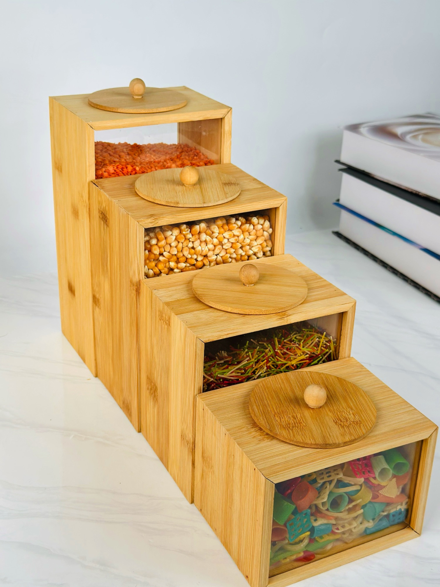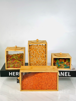 طقم سكر وشايي مع قاعدة بامبو رأس تاج