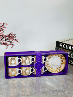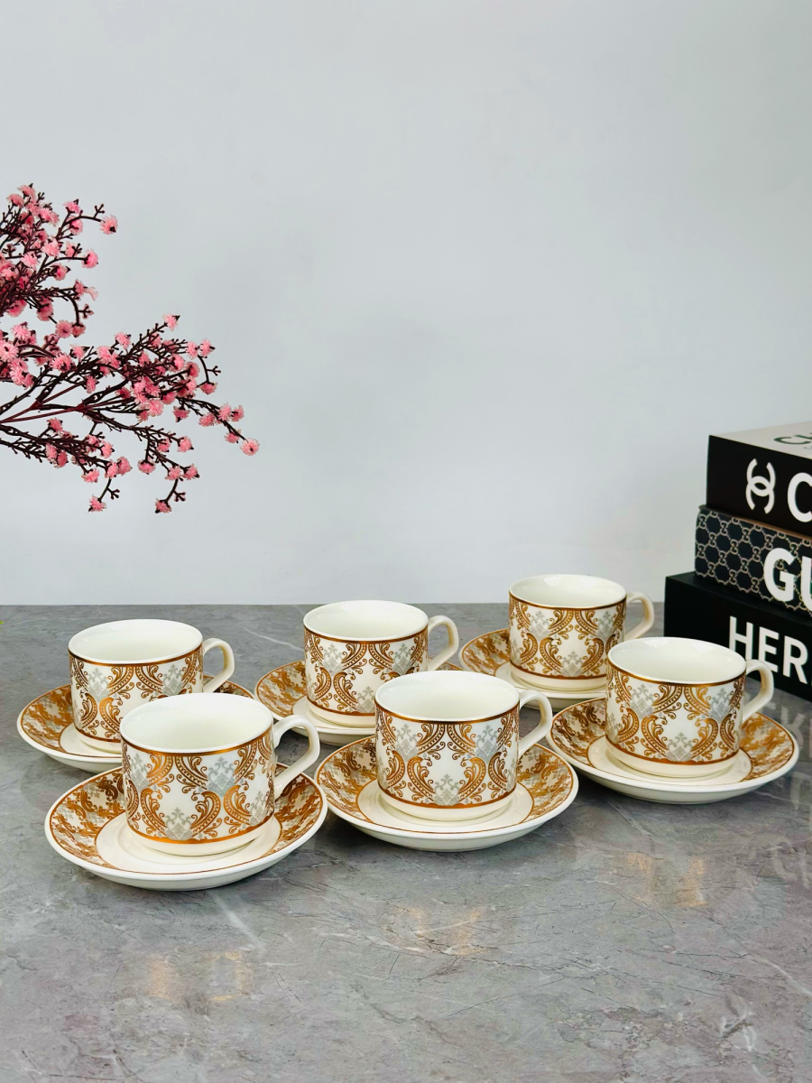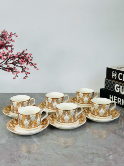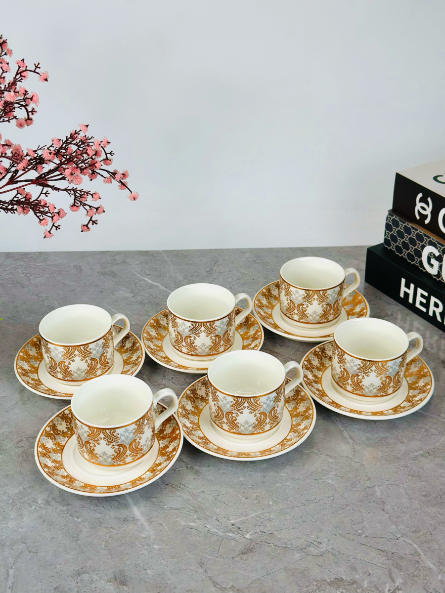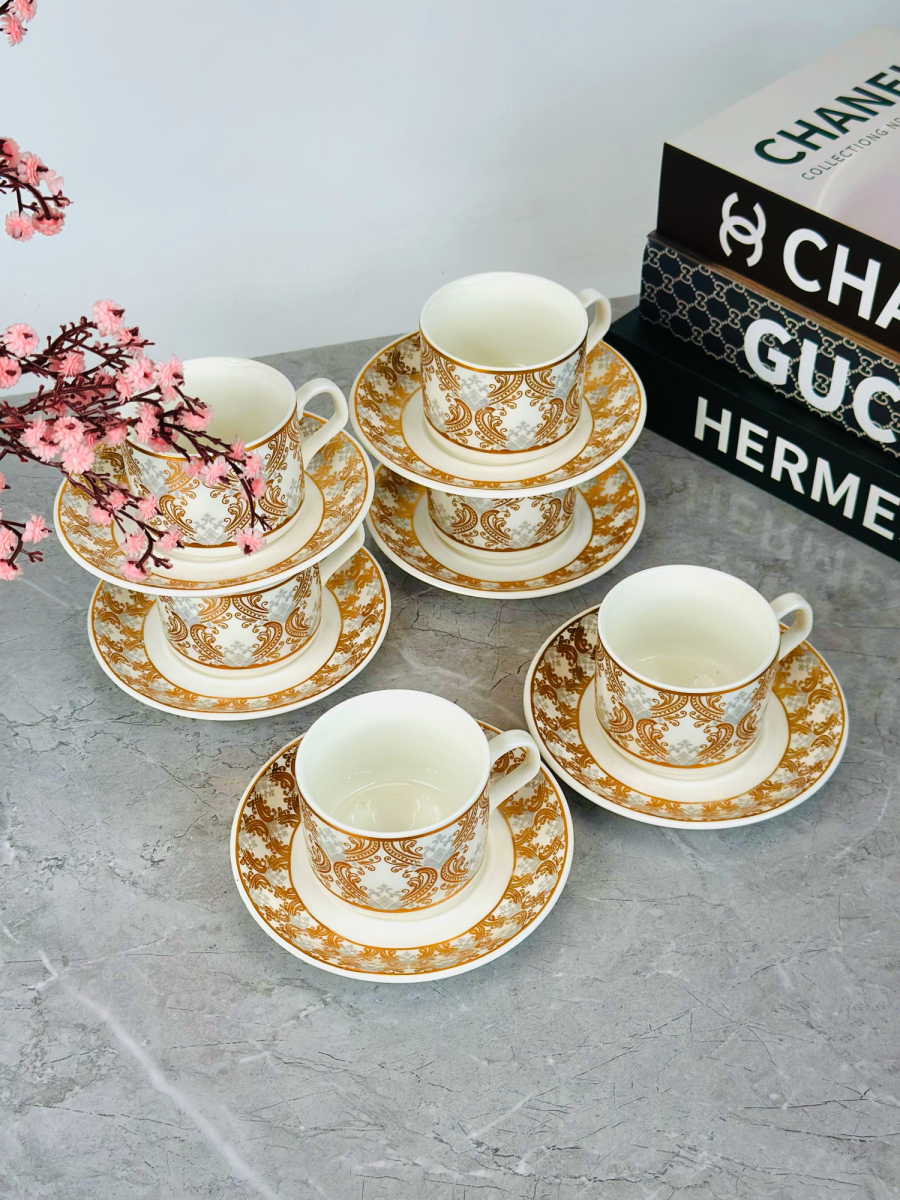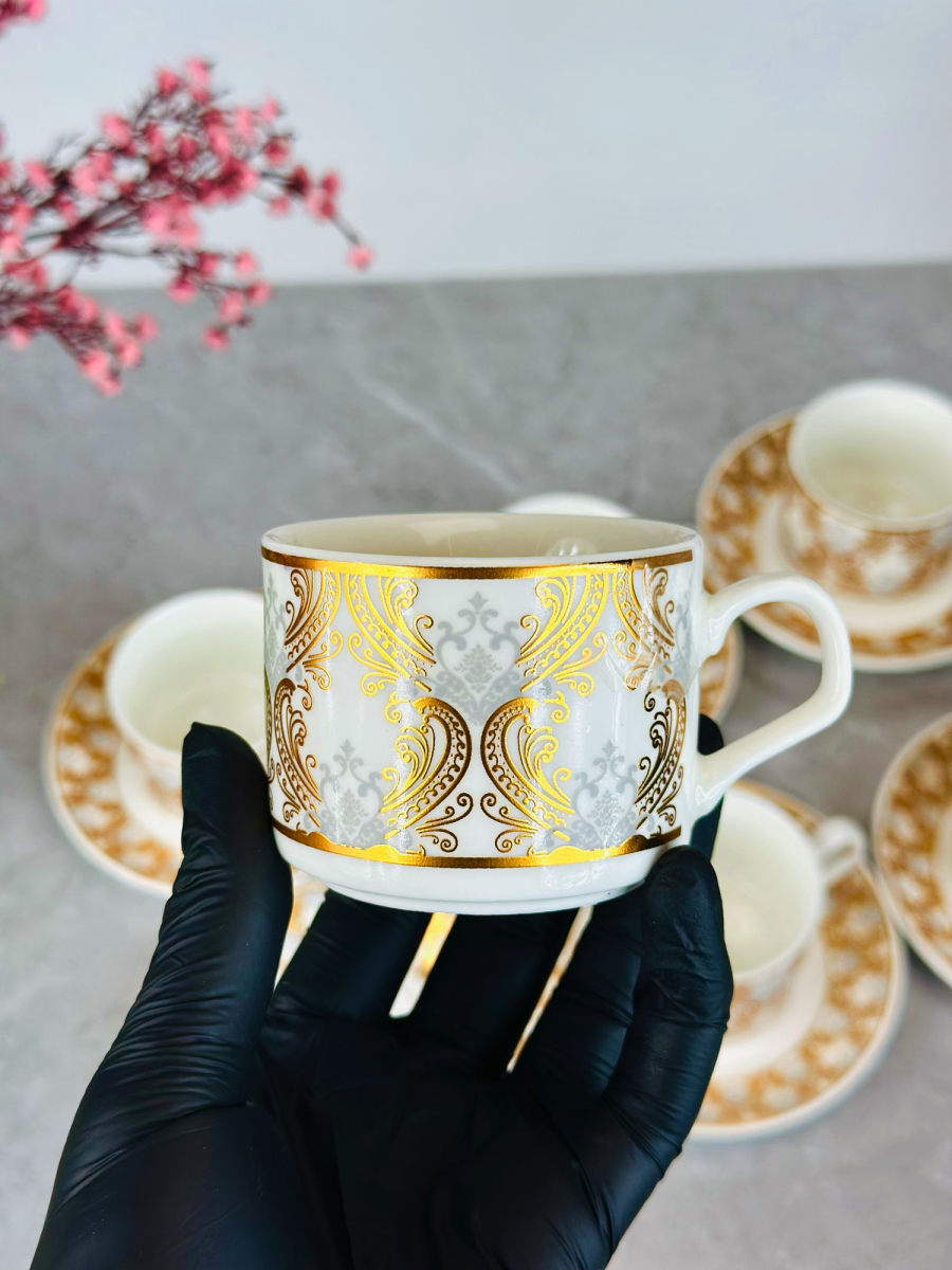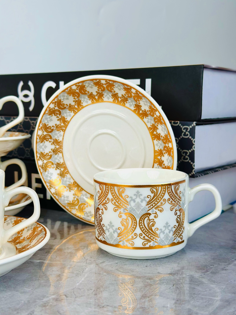 طقم 6 قطعة اكوب و صحن سیرامیک نقش ذهبي - C