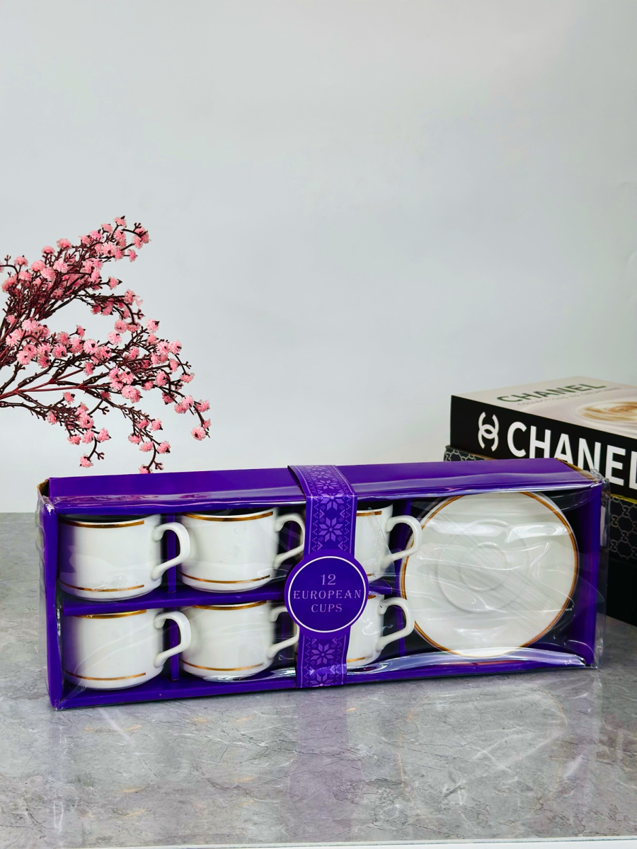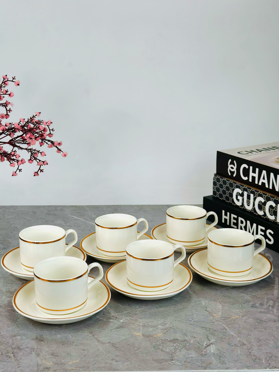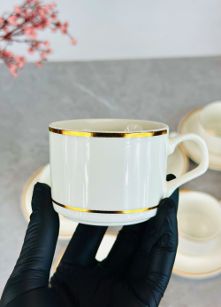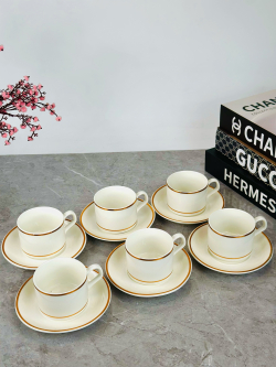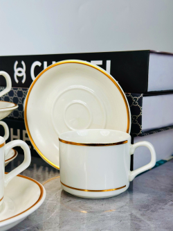 طقم 6 قطعة اكوب و صحن سیرامیک نقش ذهبي - E