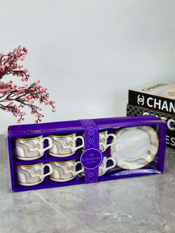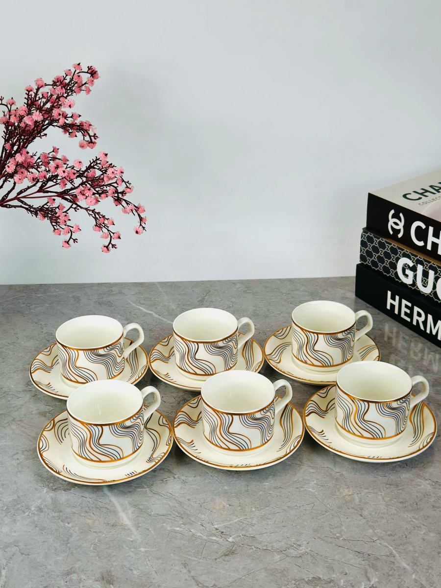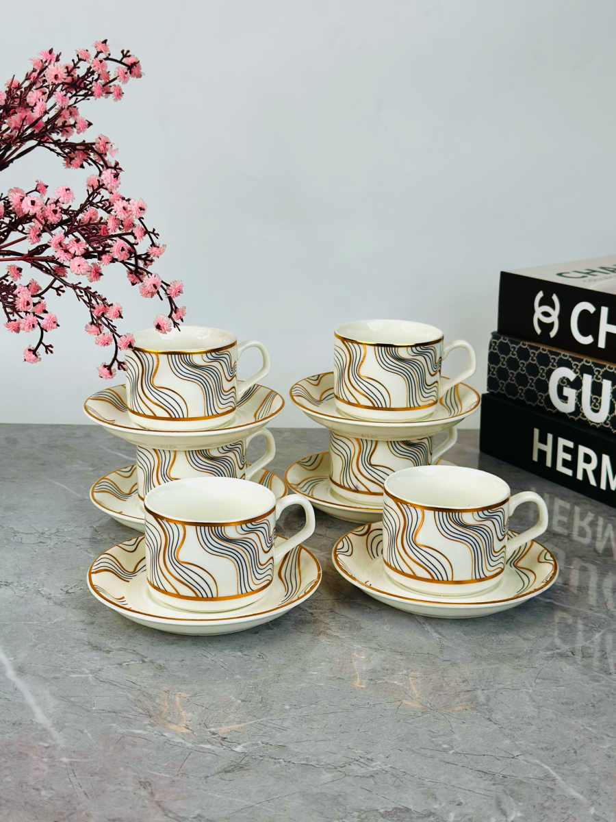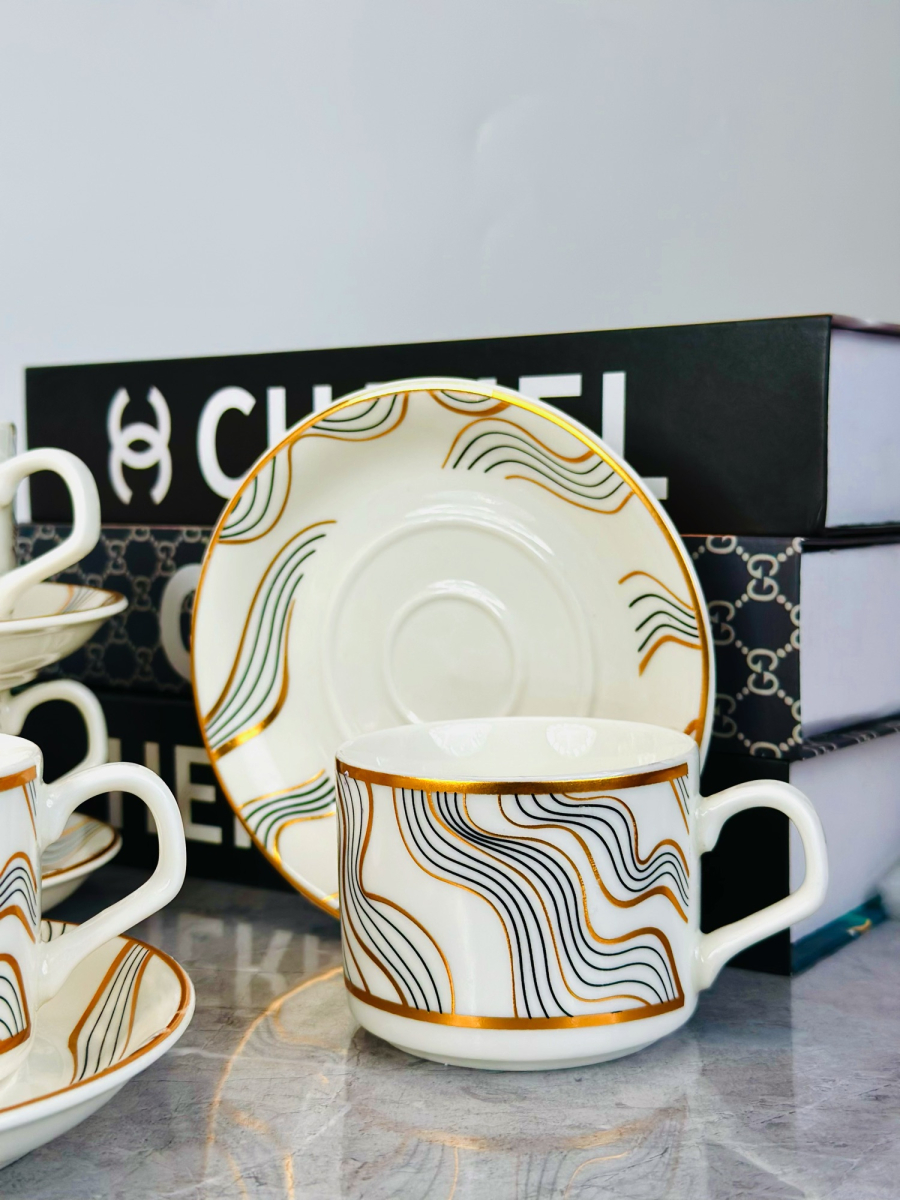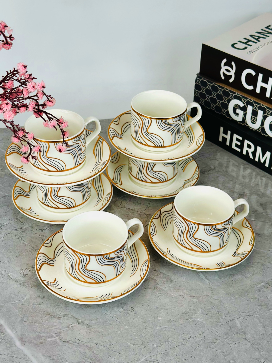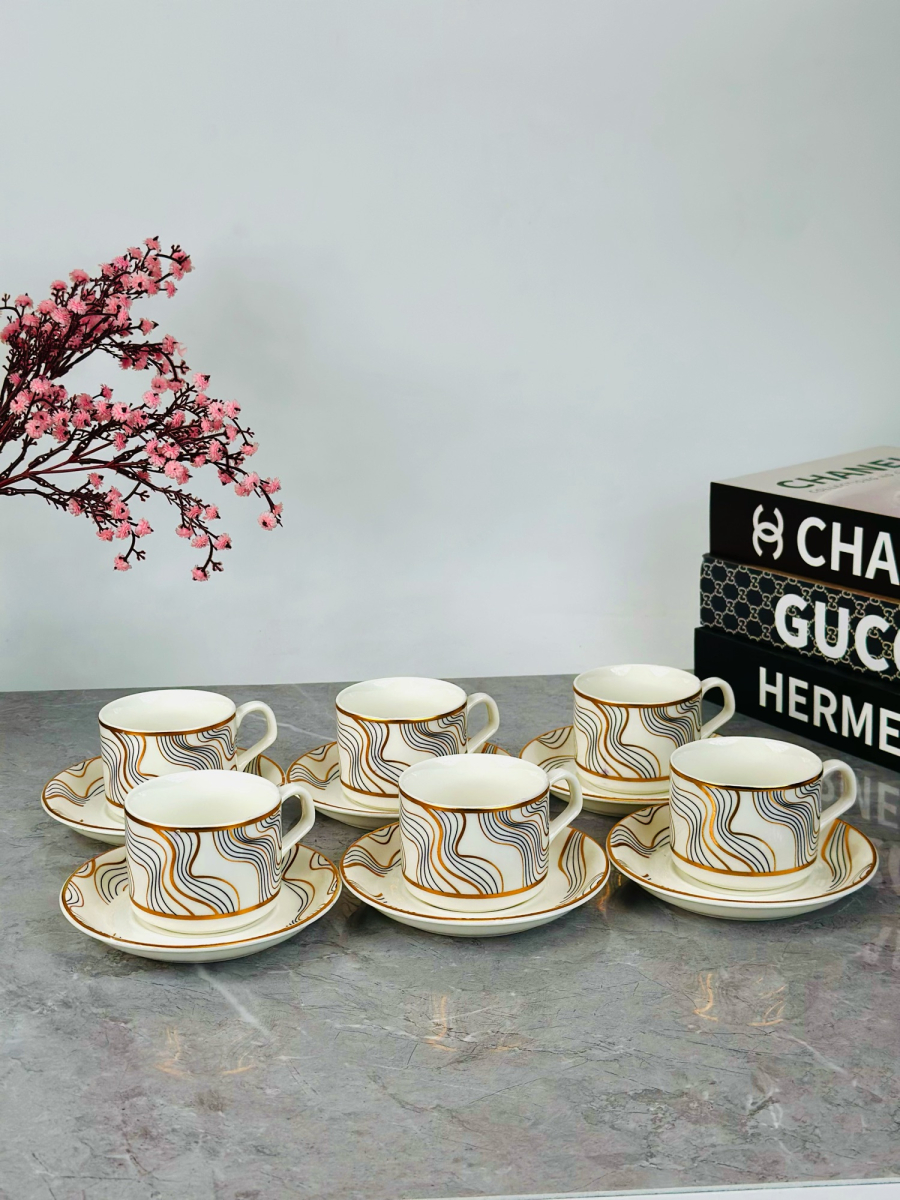 طقم 6 قطعة فنجان و صحن سیرامیک نقش ذهبي - H