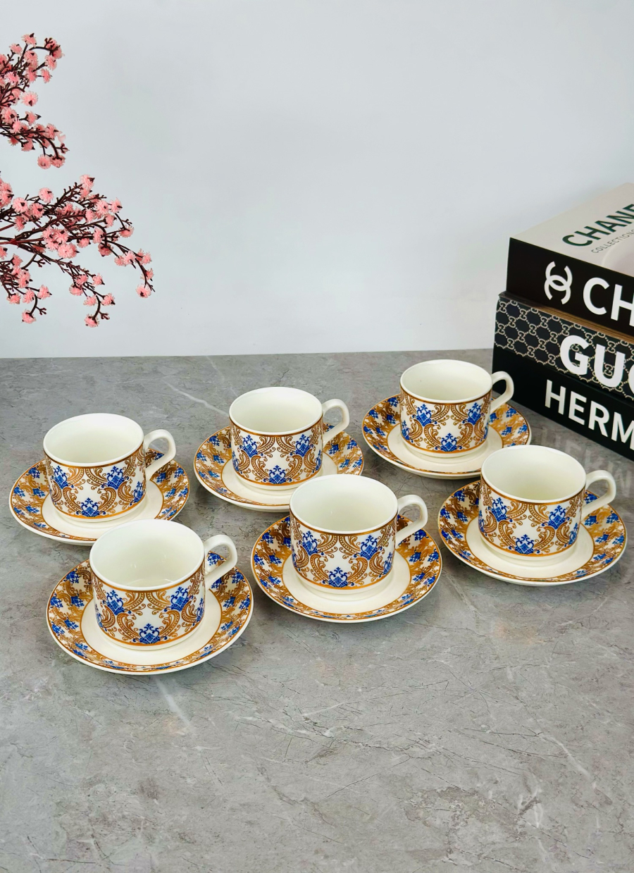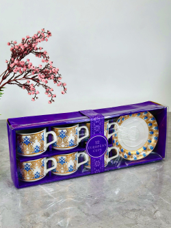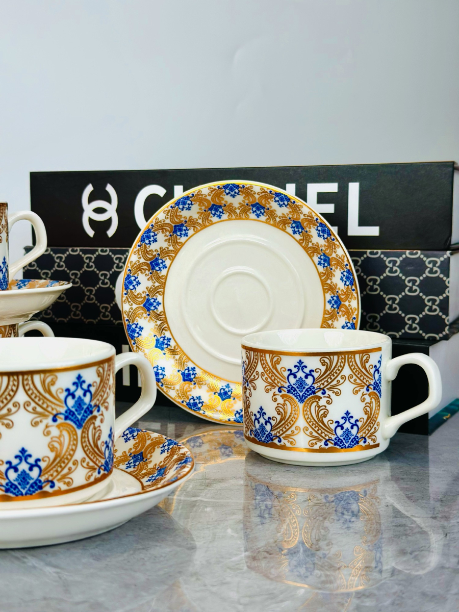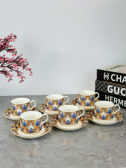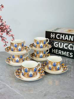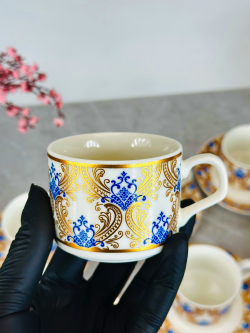 طقم 6 قطعة اكوب و صحن سیرامیک نقش ذهبي - K