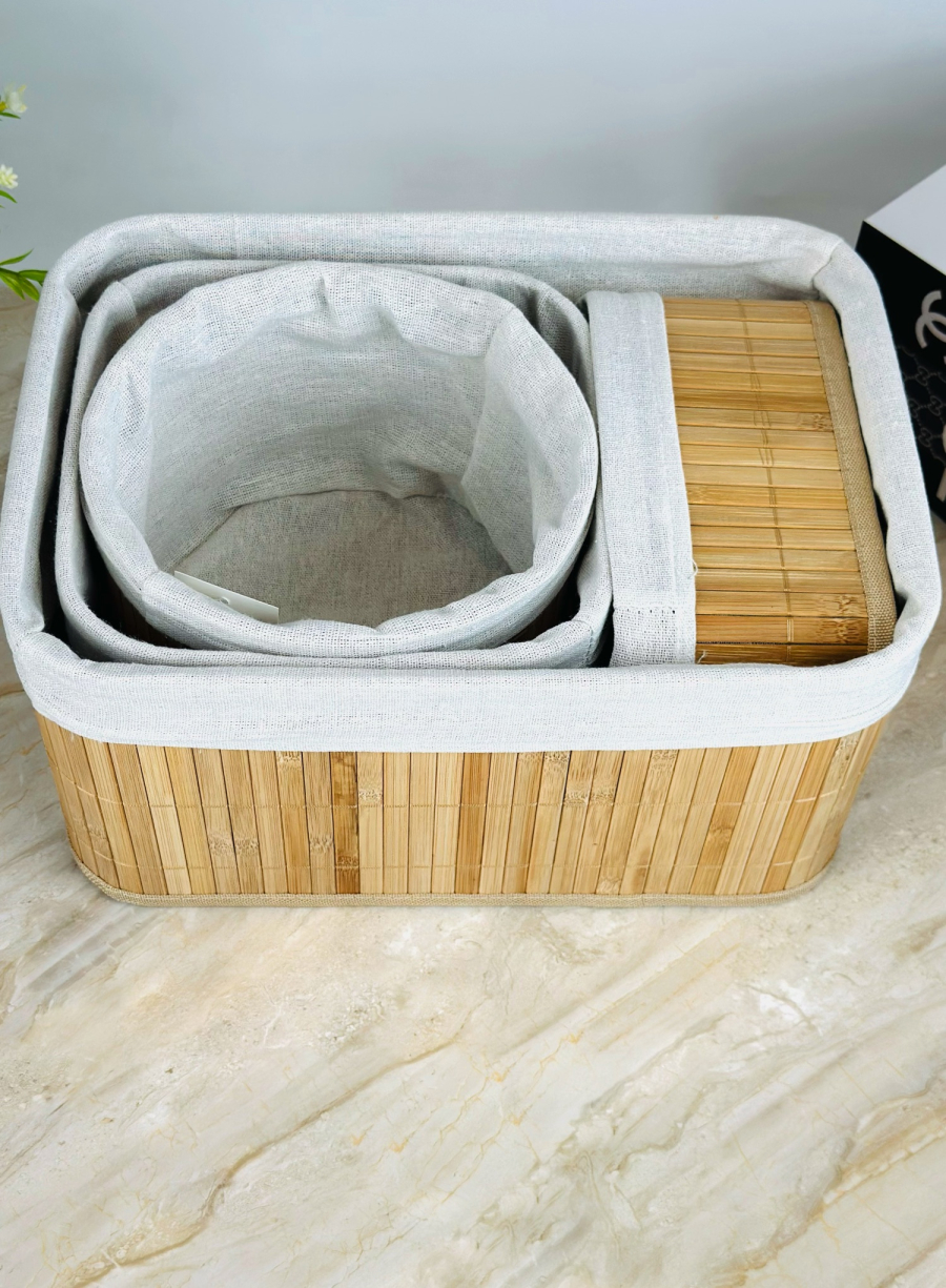 طقم صيني خشب بامبو ثلاثي نقش E-5