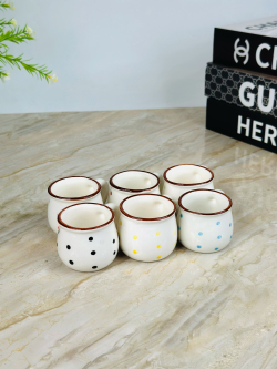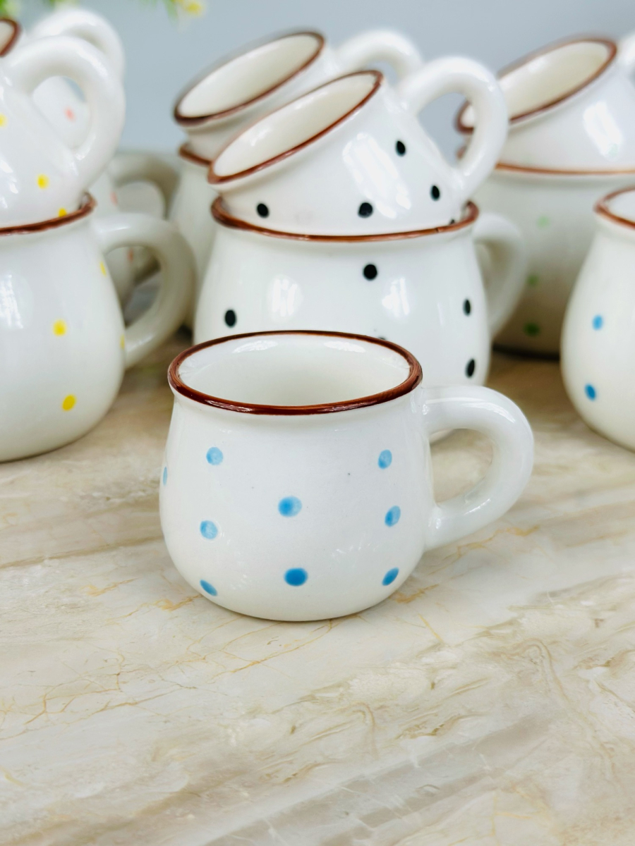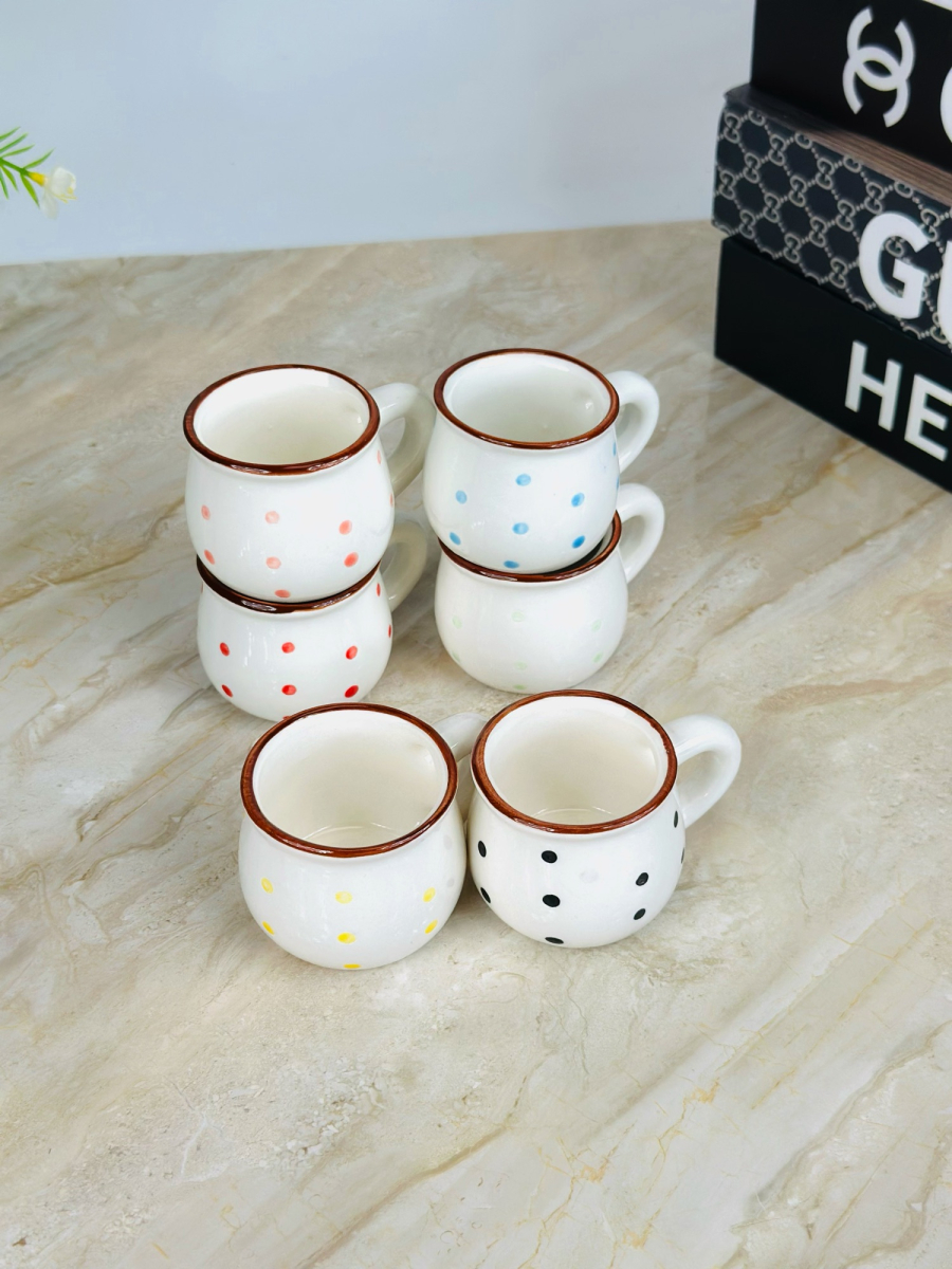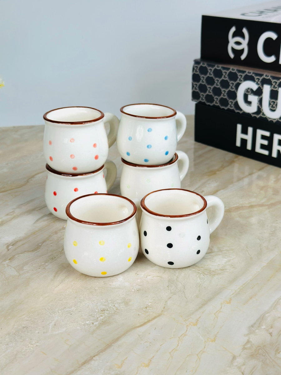 طقم ٦ عدد فنجان سیرامیک ابیض صغير نقطة ملون