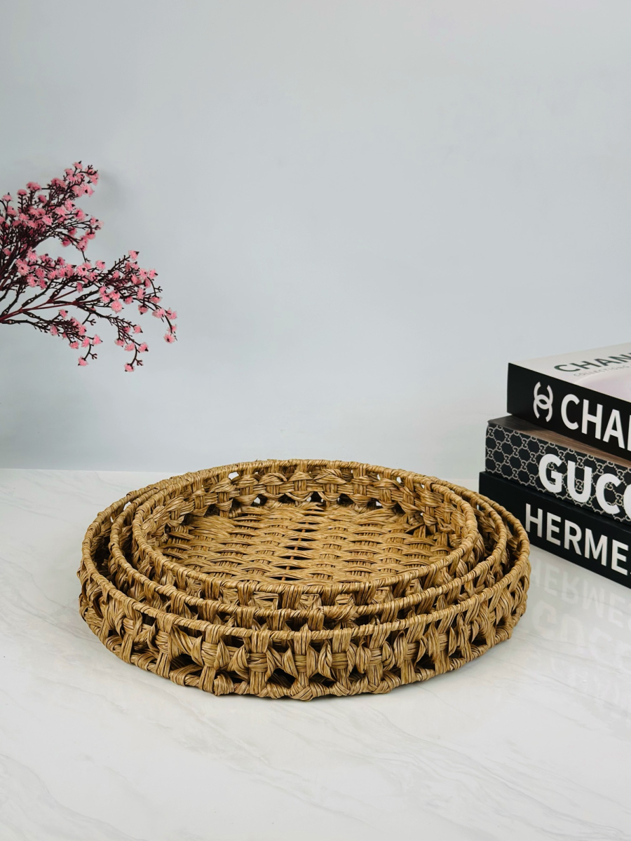 طقم سلة او صيني خوص ثلاثي دائري MO3