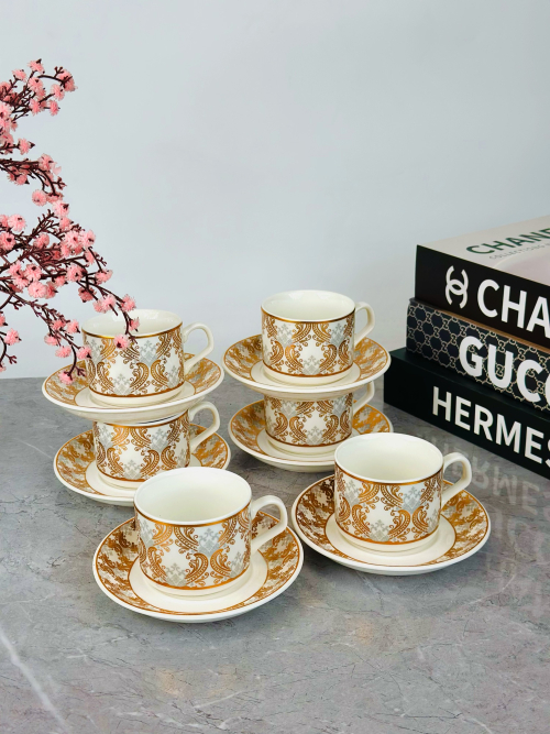 طقم 6 قطعة اكوب و صحن سیرامیک نقش ذهبي - C
