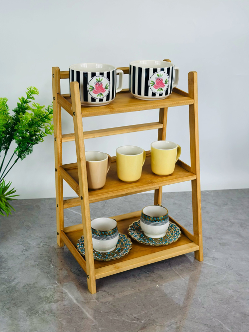 رف منظم بامبو ثلاث طبق خشبي وسط 26*19*40سم