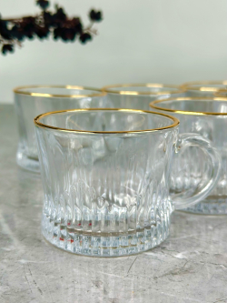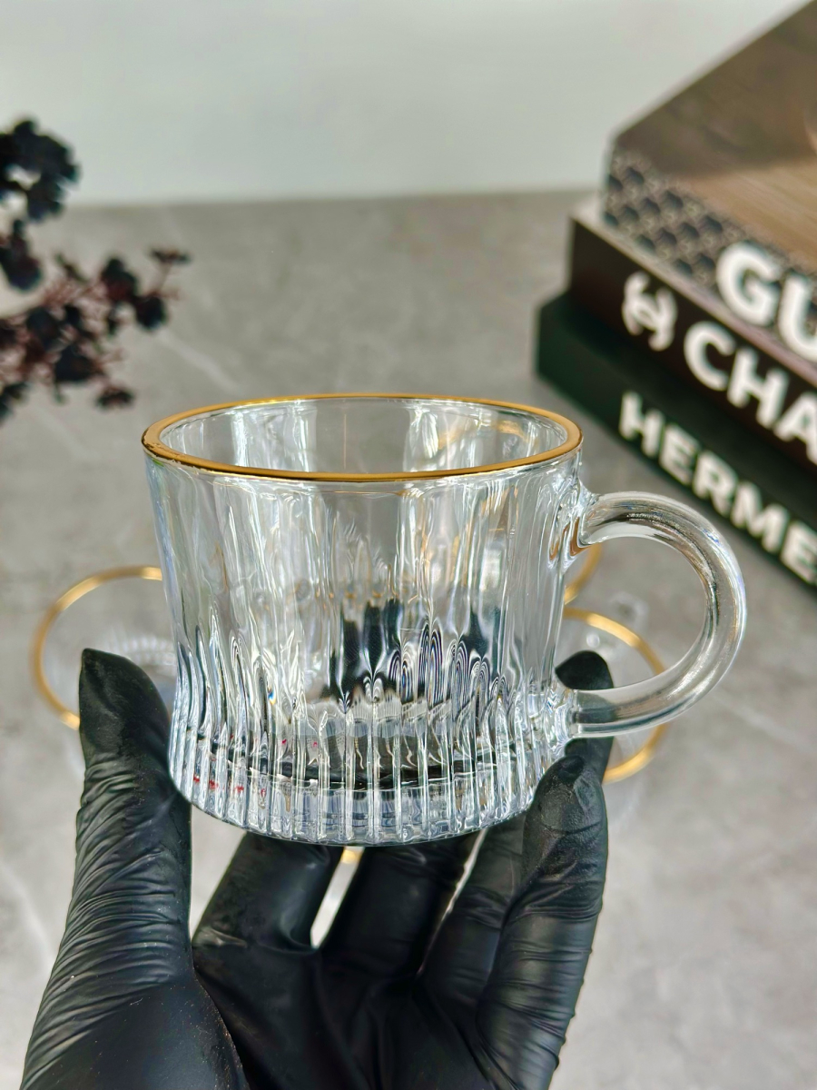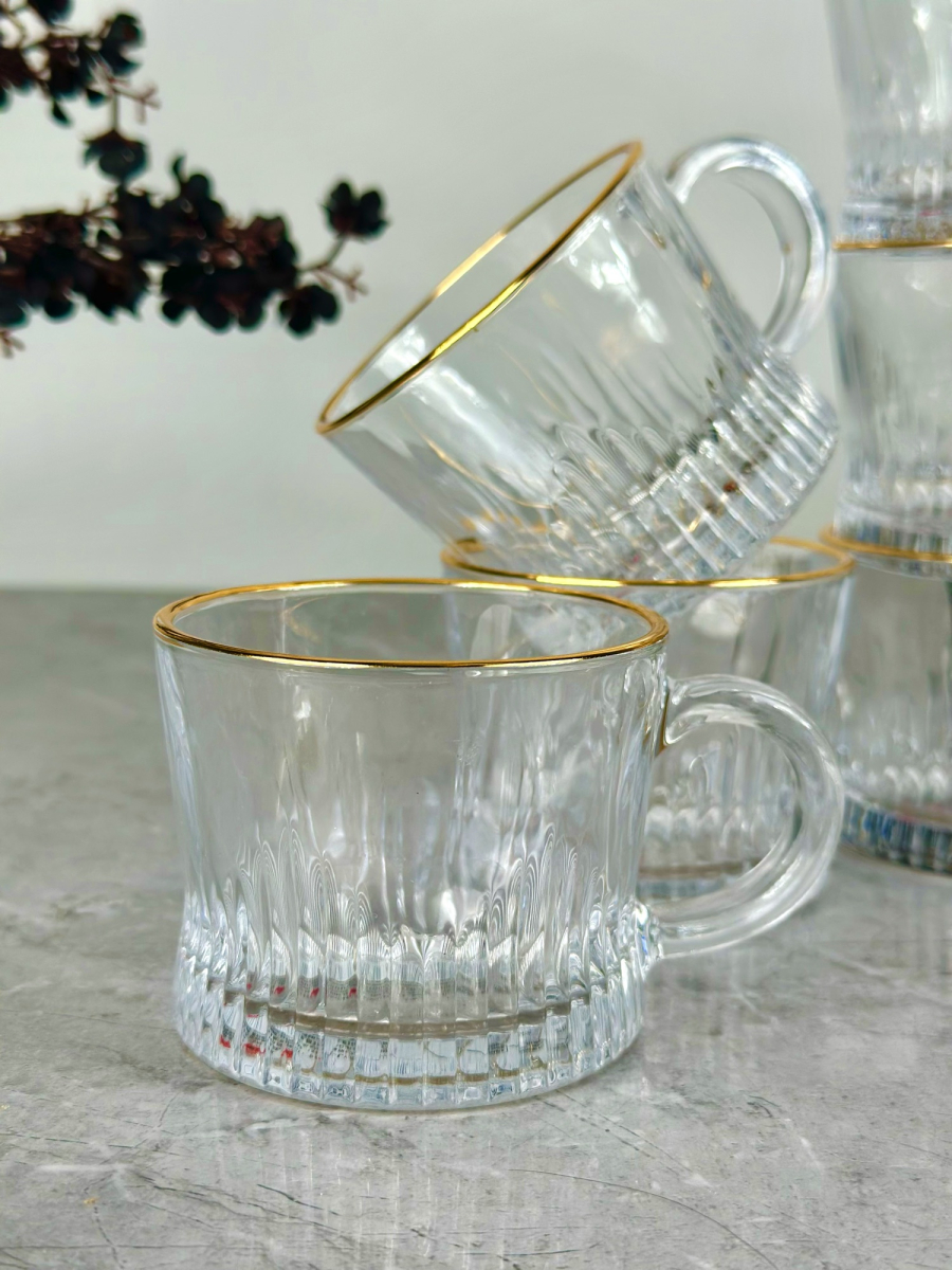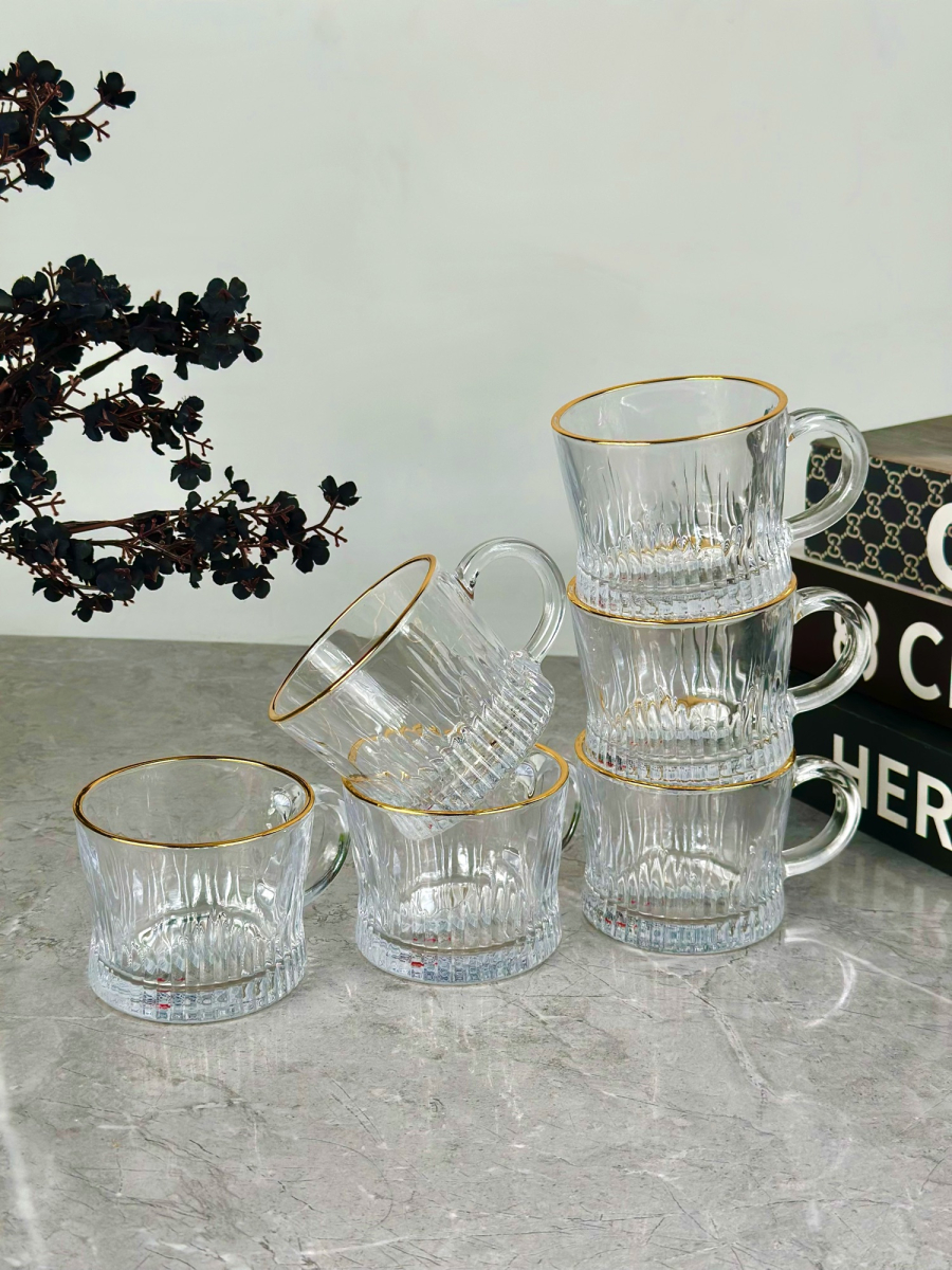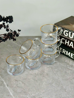 طقم اكوب ٦ عدد زجاج يد خرز كبير و ثقيل