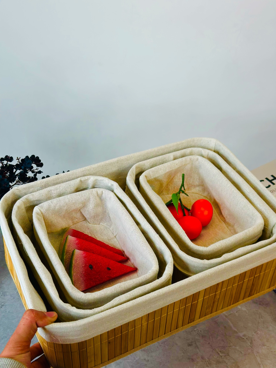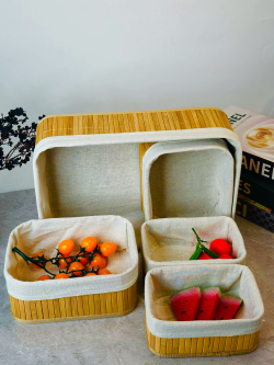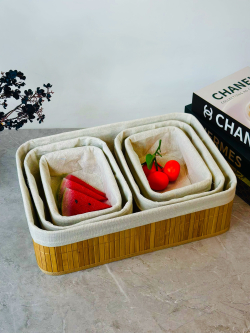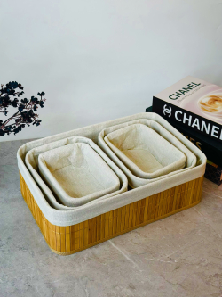 طقم سكر و شايي و قهوه سيراميك و قاعدة بامبو bh-4