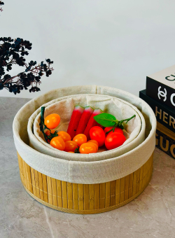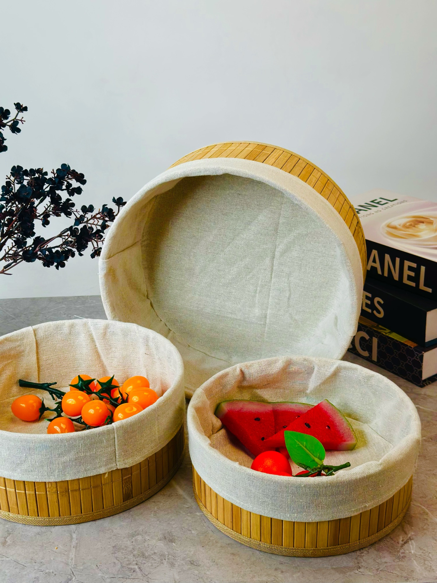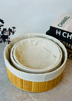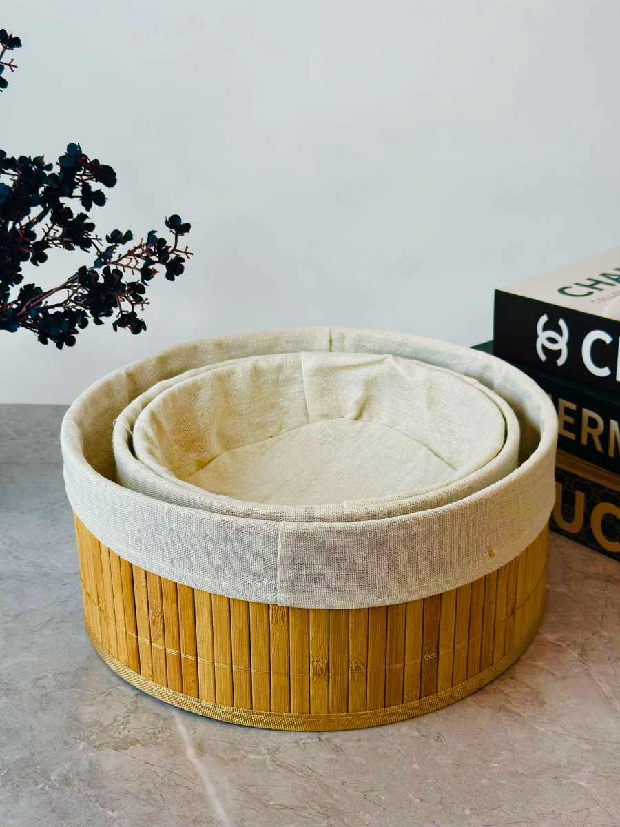 طقم سلة 3 عدد بامبو و اقمشة دائري