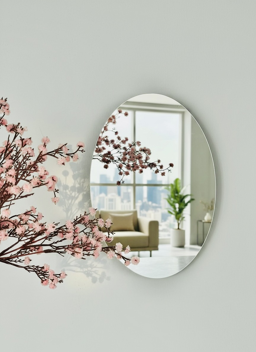 بلاط مرايا أكريليكية لاصقة عالية الدقة بيضوي 30سم