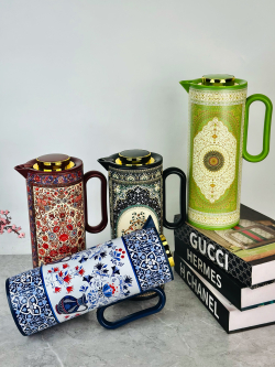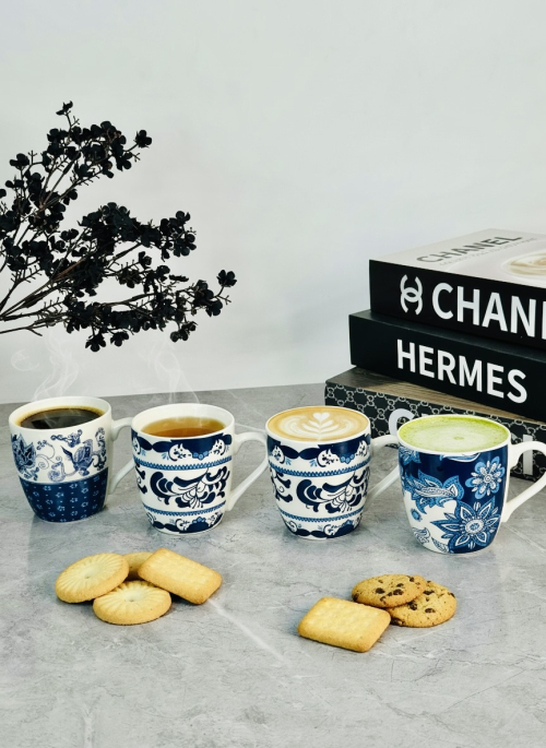 طقم 6 قطعة اكوب و صحن سیرامیک نقش ذهبي - I
