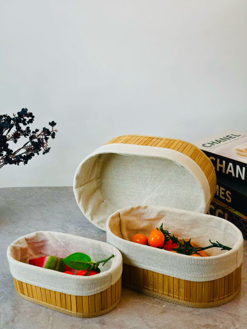 طقم سلة 3 عدد بامبو و اقمشة بيضوي