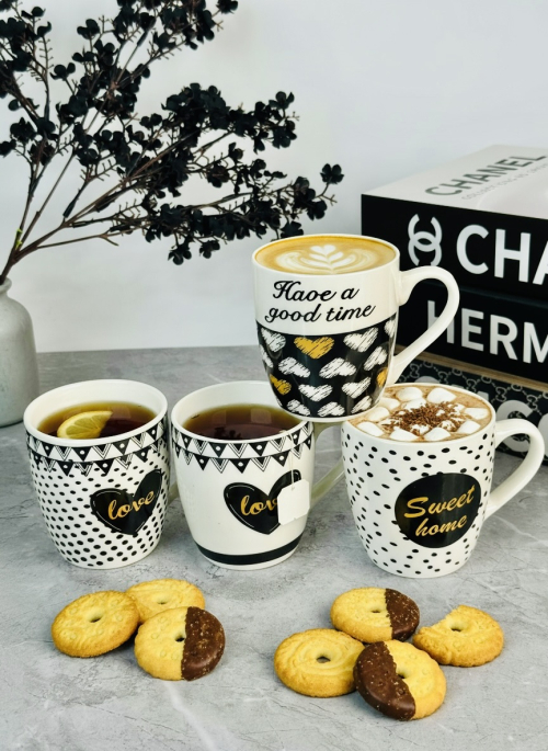 طقم 6 قطعة اكوب و صحن سیرامیک نقش ذهبي - C