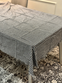 مفرش طاولە مربعات صغير اسود 170x170سم تركي