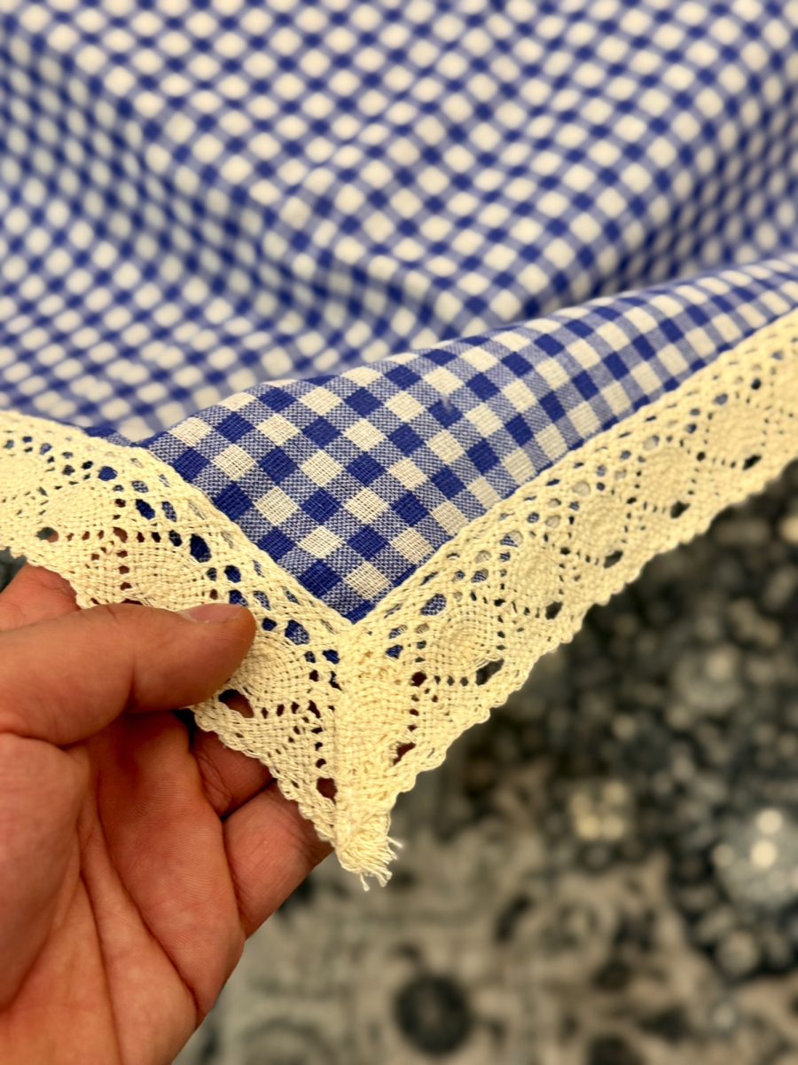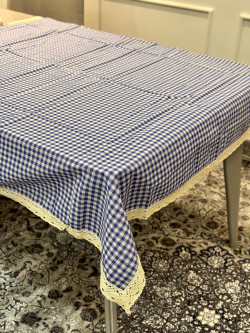 غلاف طاولە ابو الورد 140x140 ازرق مربعات