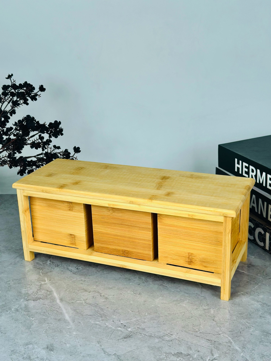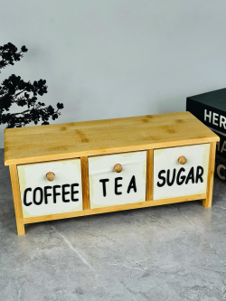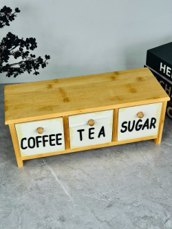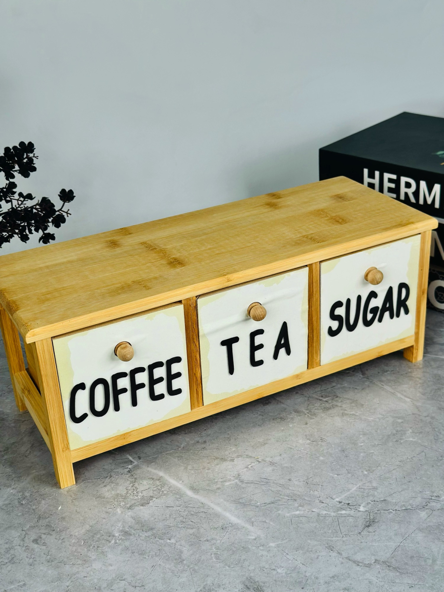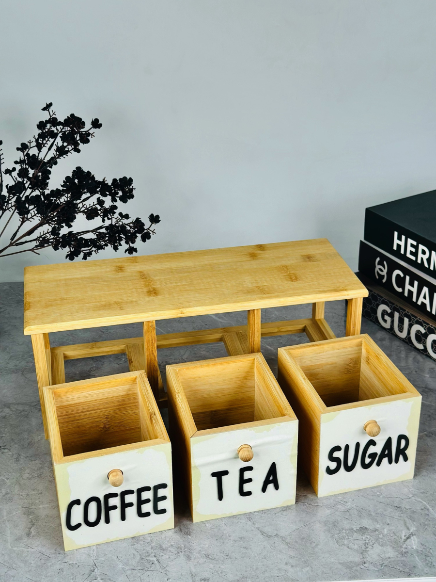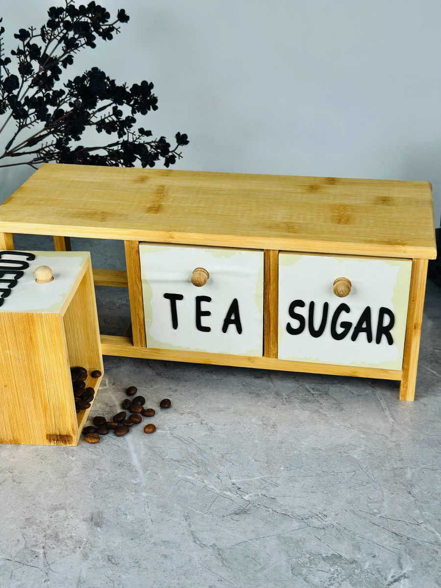 سيت سكر وشايي ثلاثي مربع مع ستاند بامبو