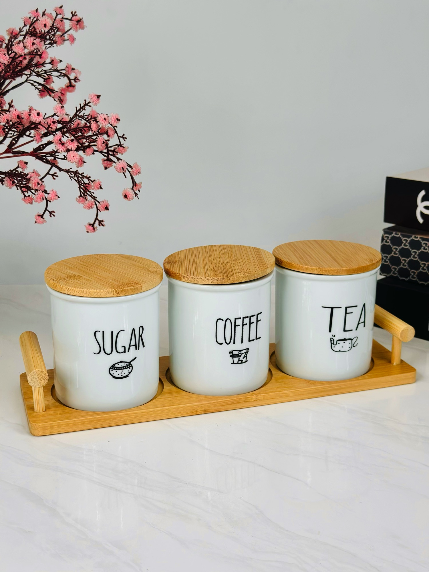طقم سكر وشايي سيراميك قاعدة بامبو صغير 42