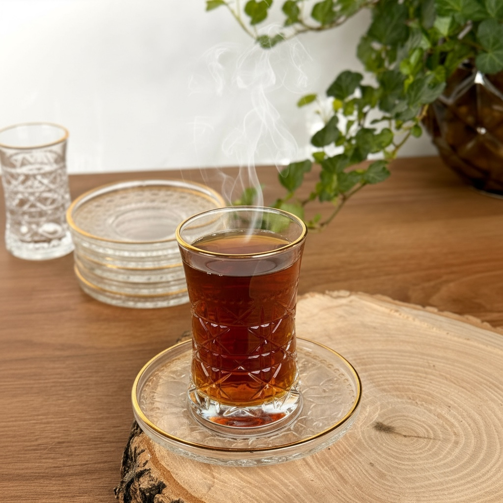 سيت استكاين و صحن اطار ذهبي زخرفة