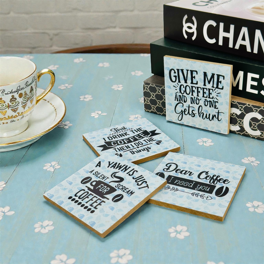 قواعد أكواب مطبوعة عليها اقتباسات عن القهوة، مناسبة للشاي/القهوة 48