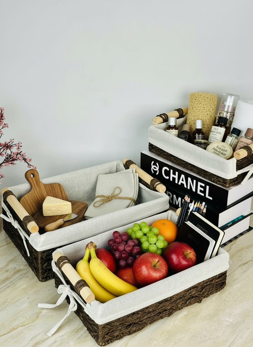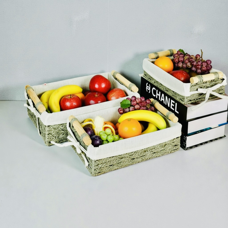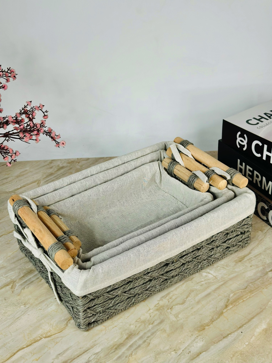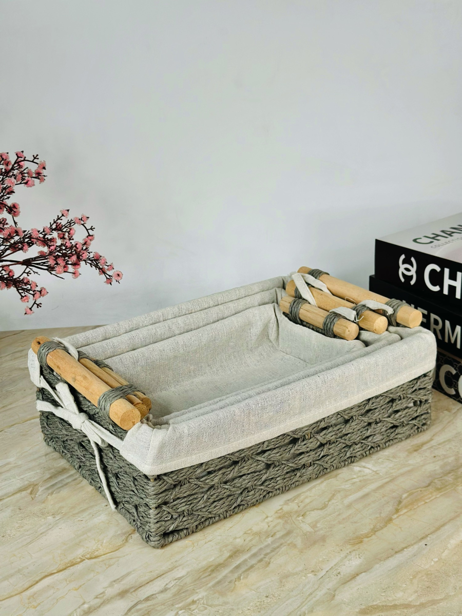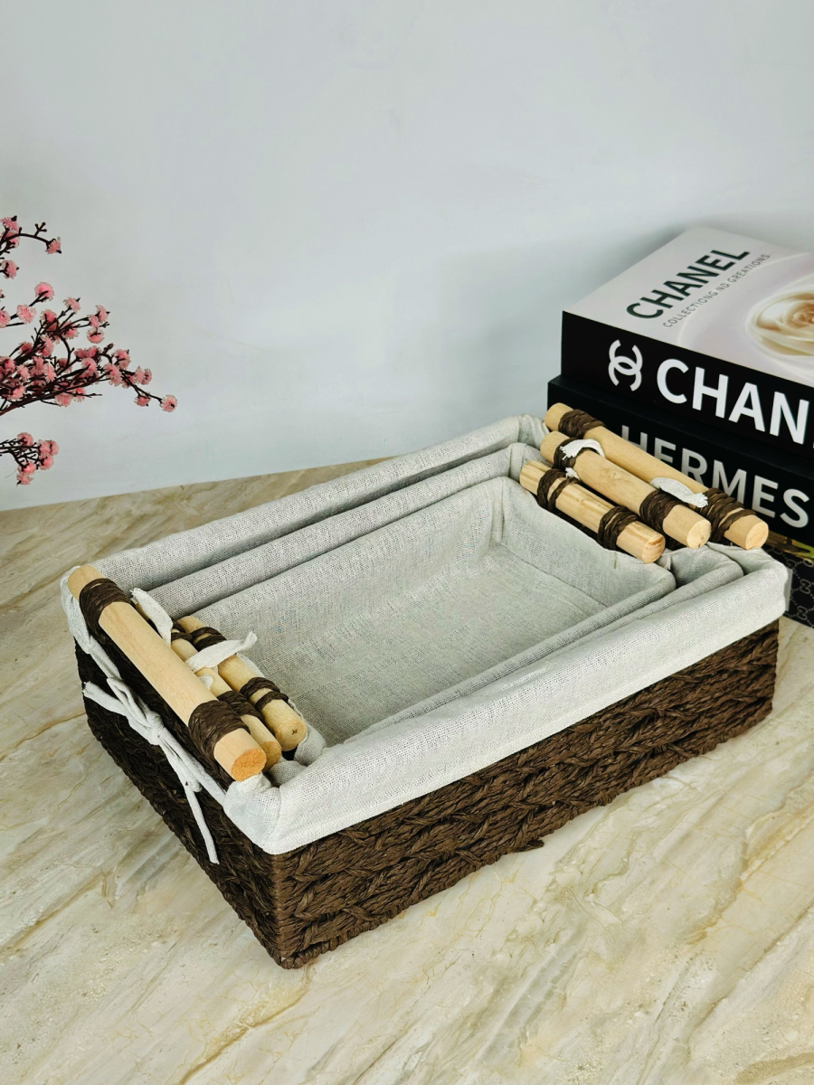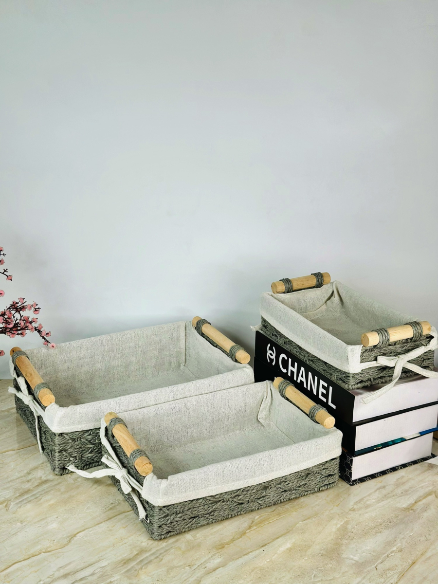 طقم سلة خوص ثلاثي مستطيل ابو قبق