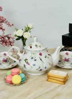 طقم بهارات و سكر و شايي سيراميك ملكي صغير نقش احمر