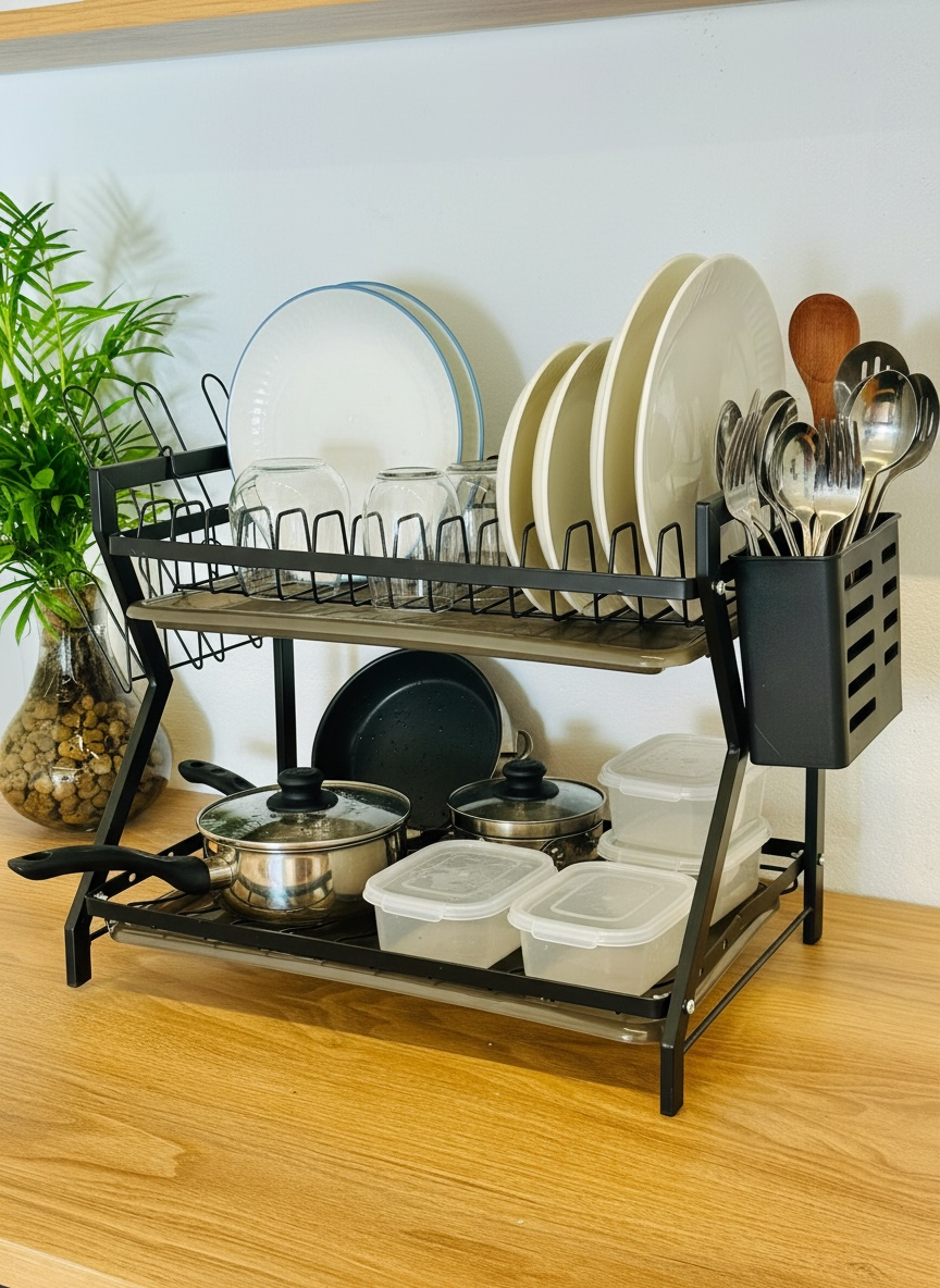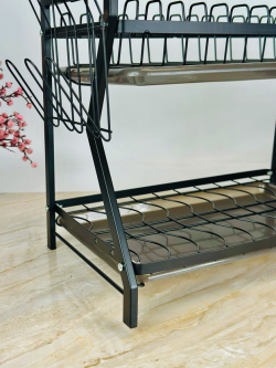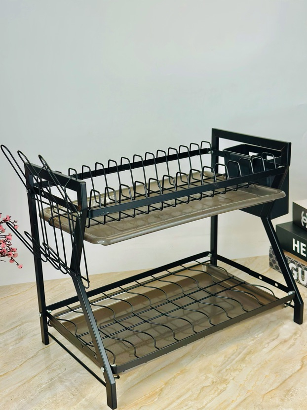ستاند صحون حديد طبقین قدمین اسود مع صيني