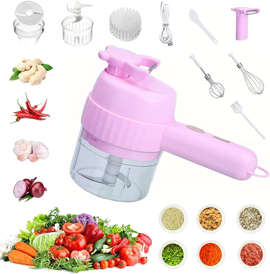 مجموعة قطع الخضروات الكهربائية المحمولة 4 في 1
