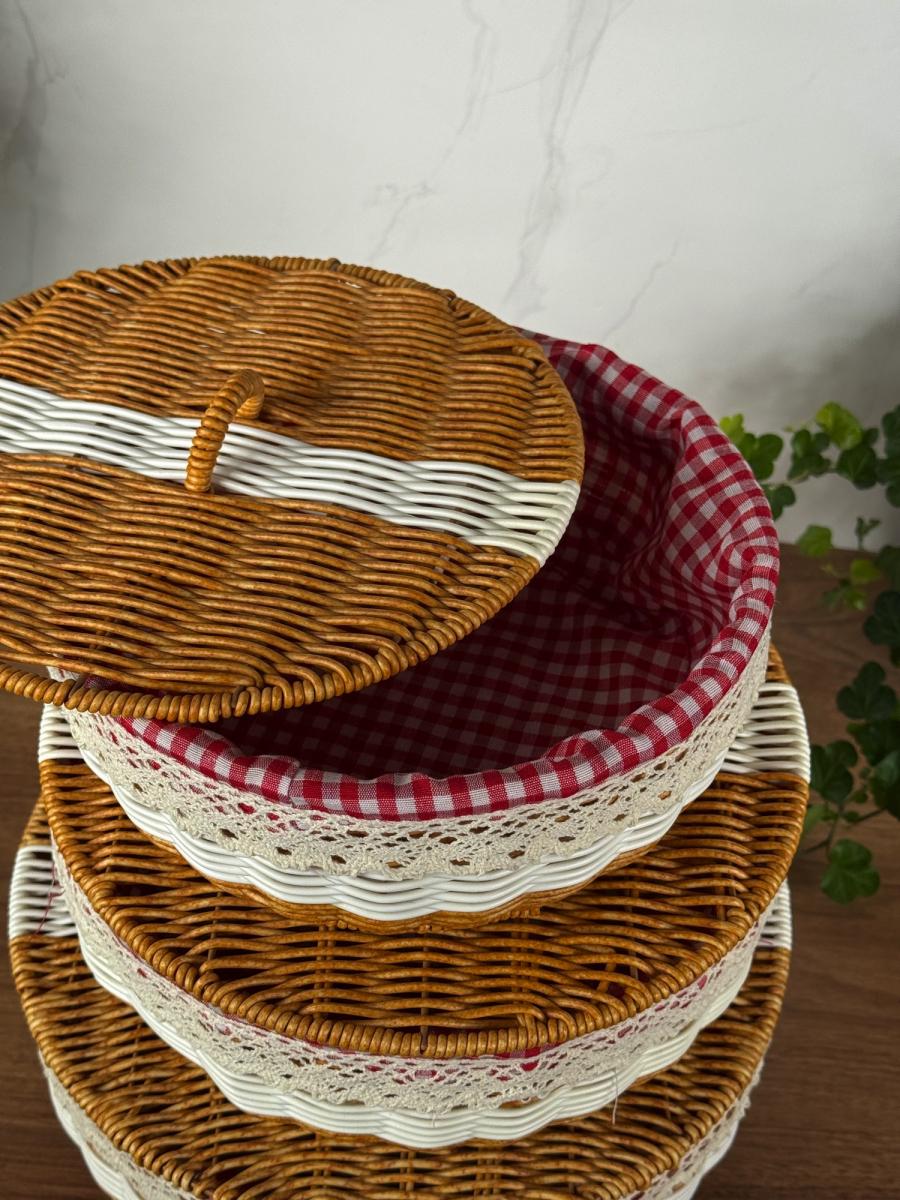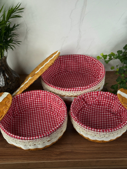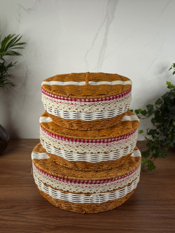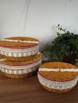 طقم سلة خوص ثلاثي كبير ويه قبق راقي