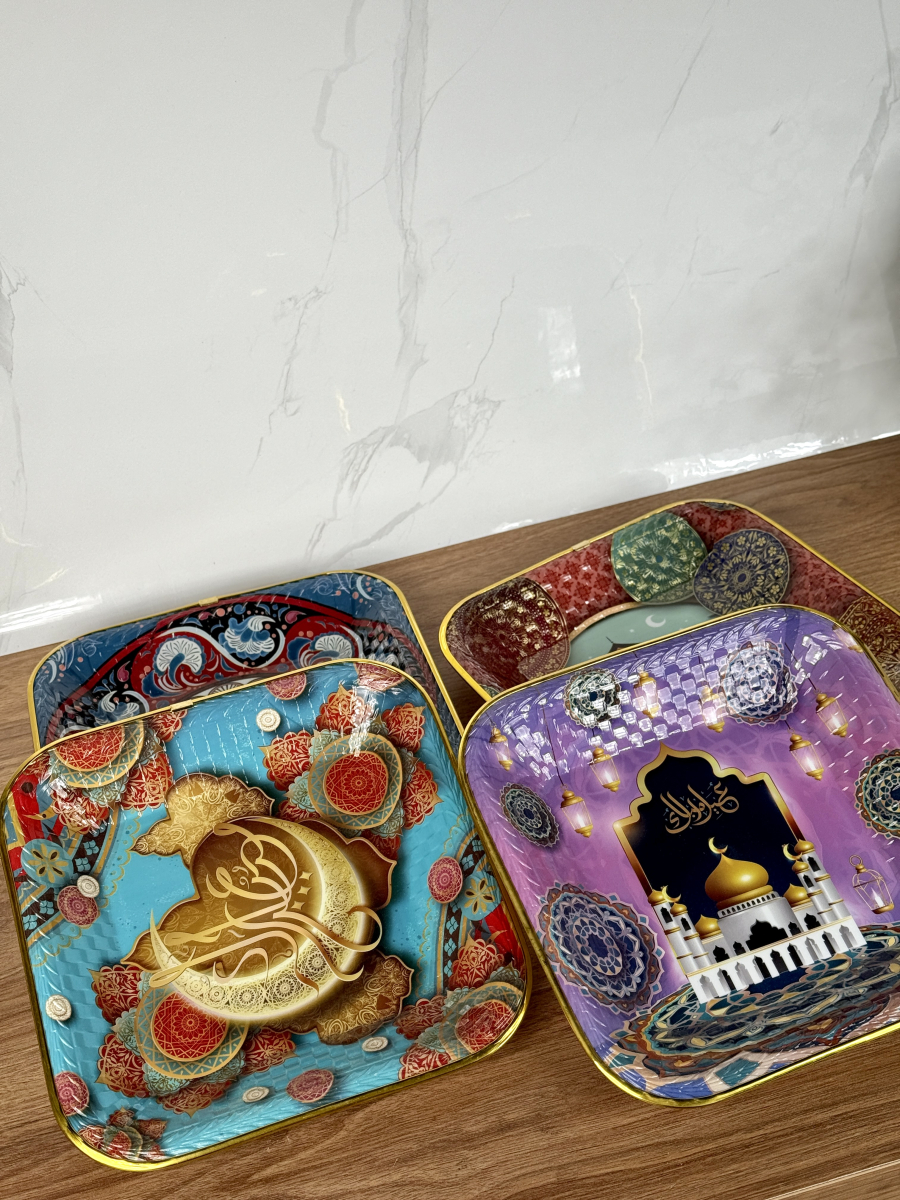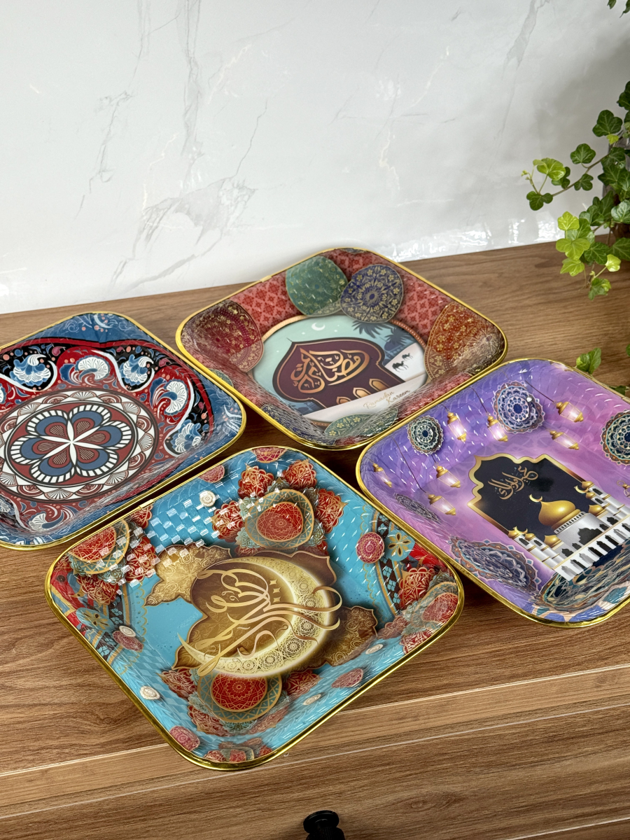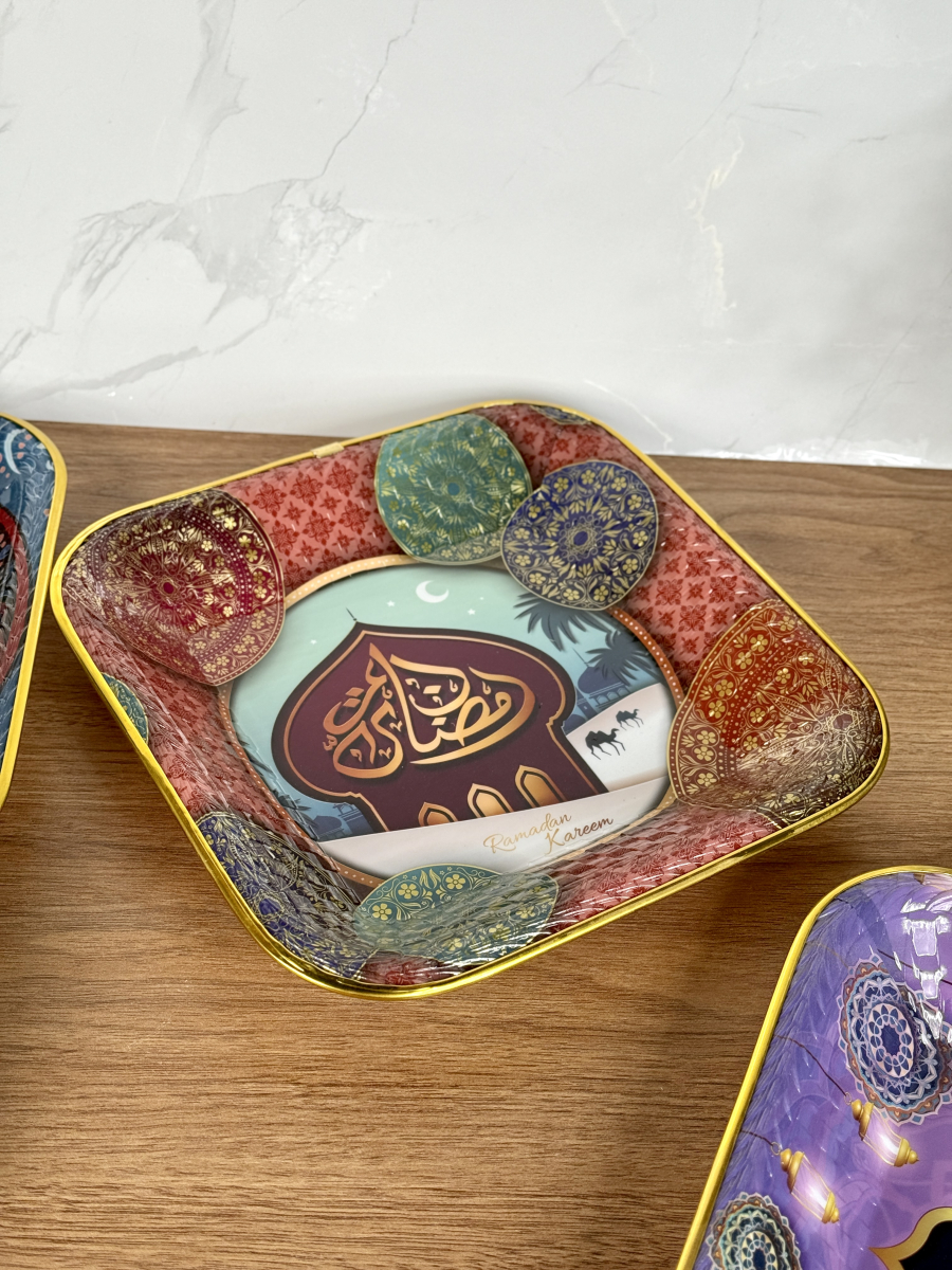صيني بلاستيك اطار ذهبي مربع رمضان 26سم