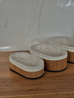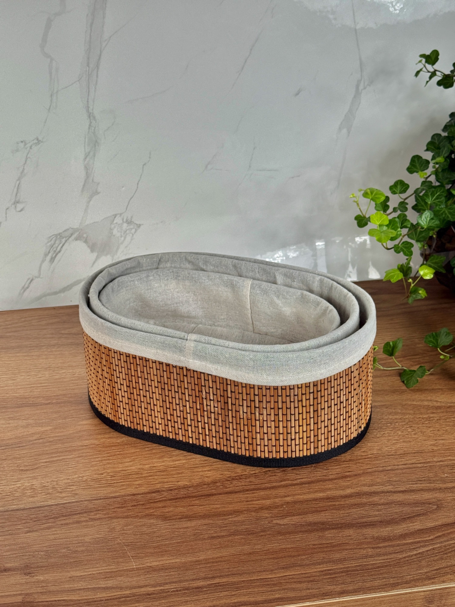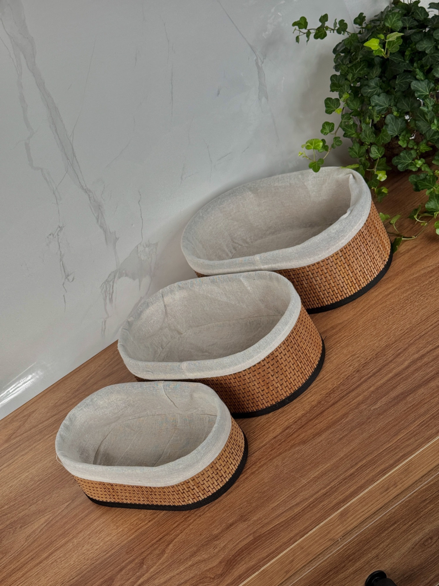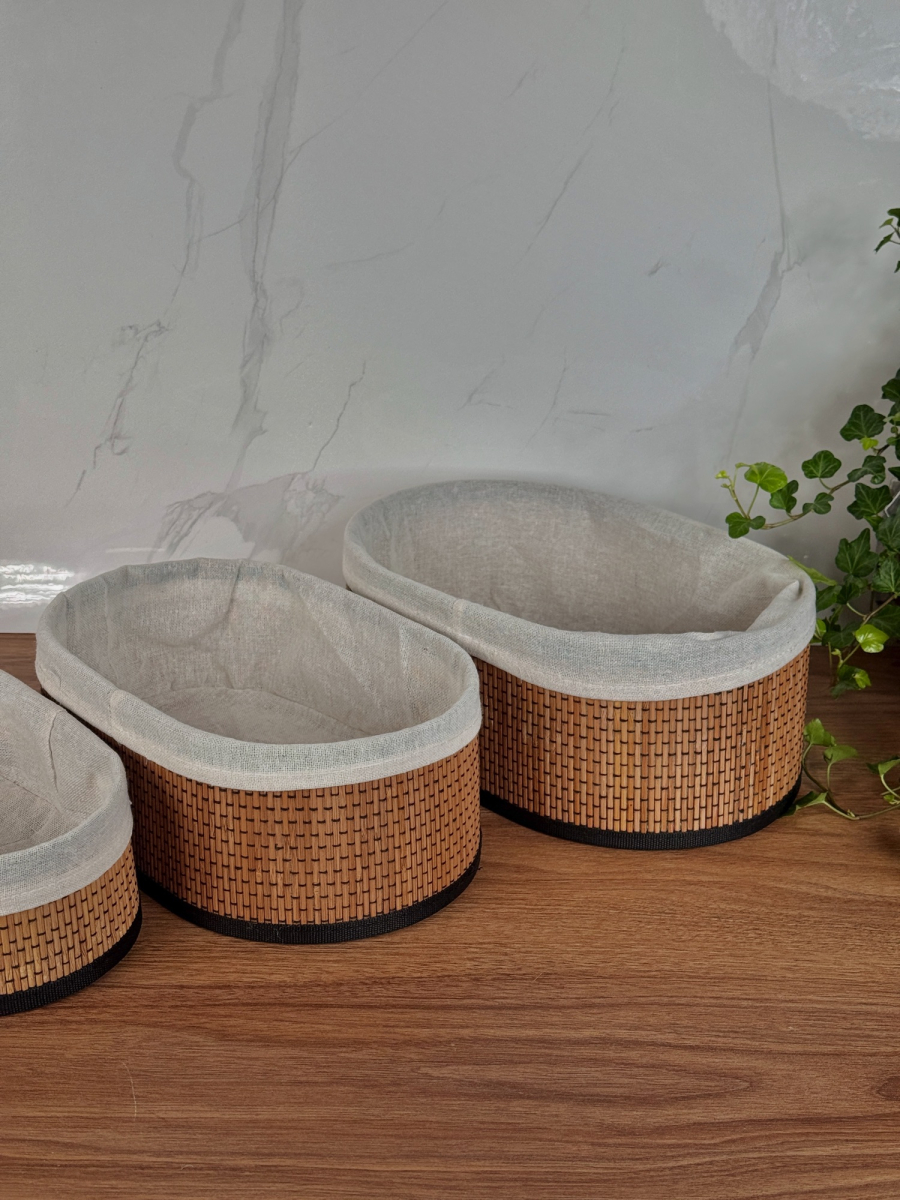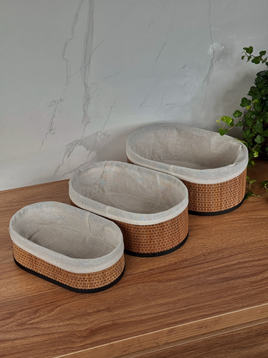 طقم سلة بامبو ثلاثي بيضوي داخل اقمشة