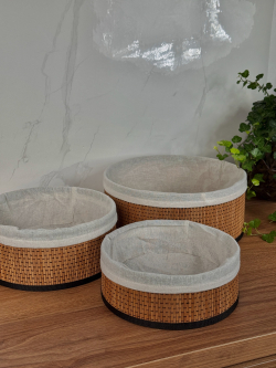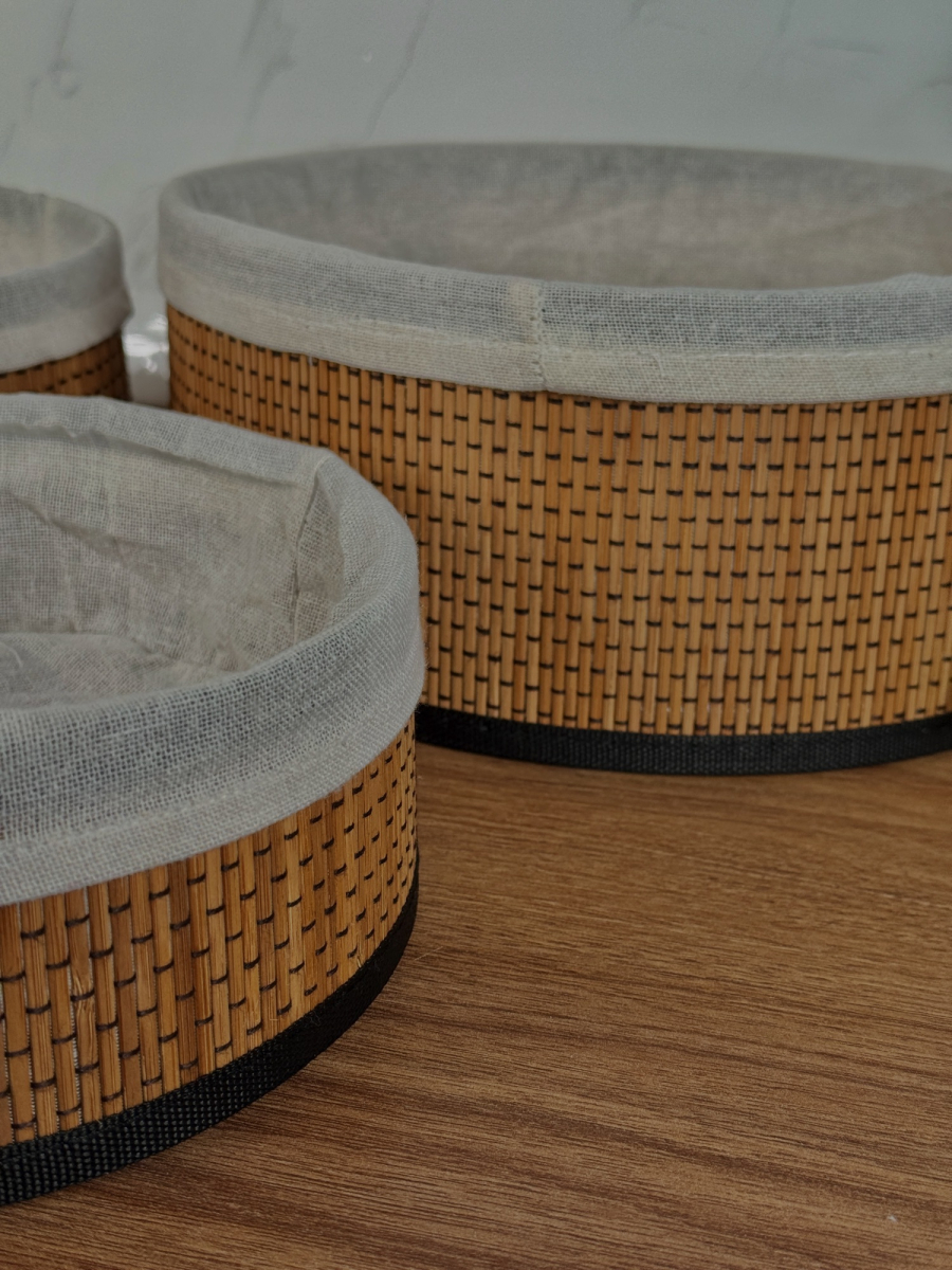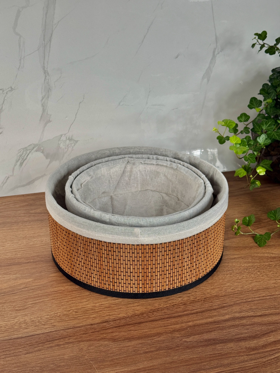 طقم سلة بامبو ثلاثي دائري داخل اقمشة