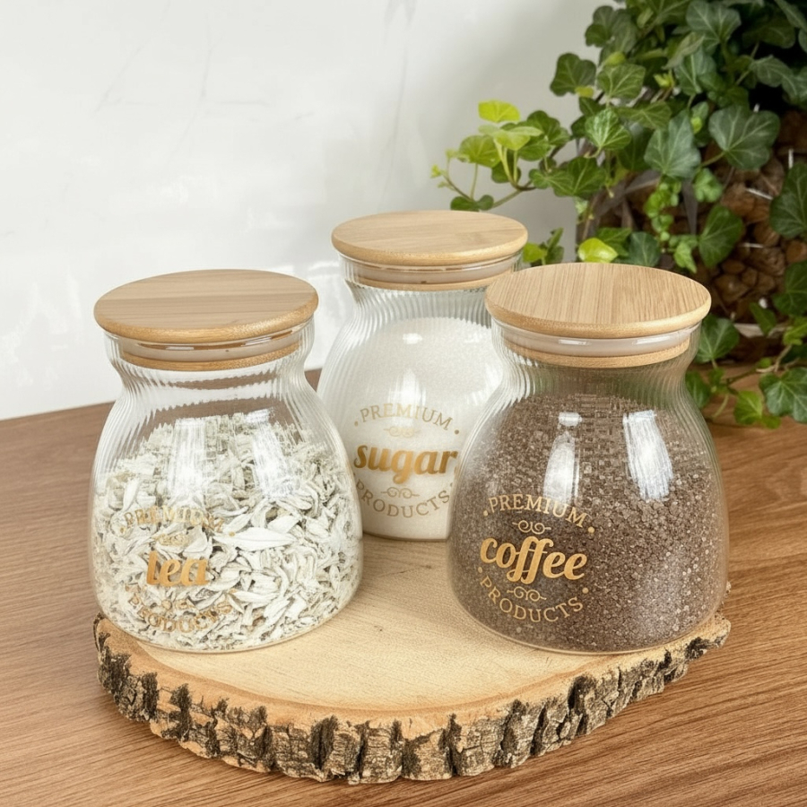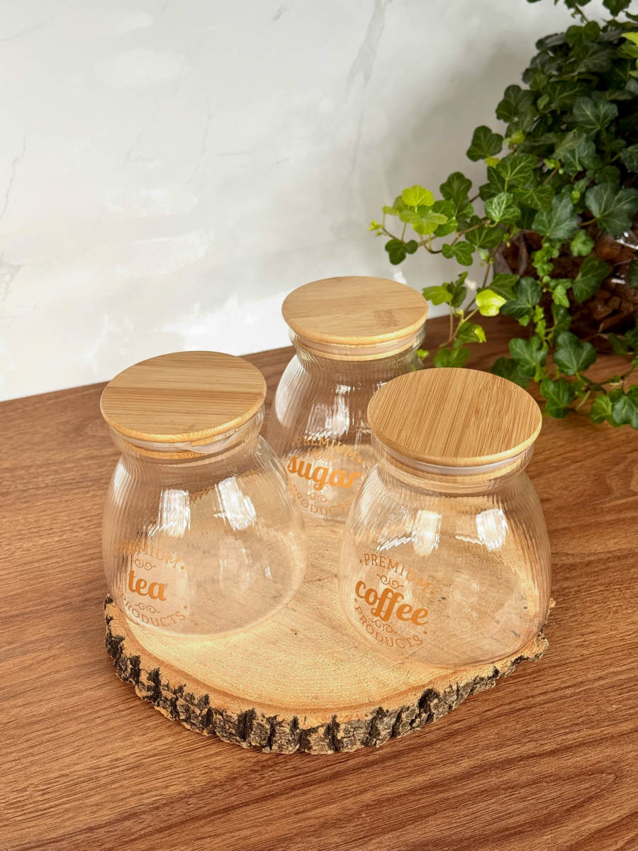 طقم سكر وشايي سيراميك قاعدة بامبو دايميوند