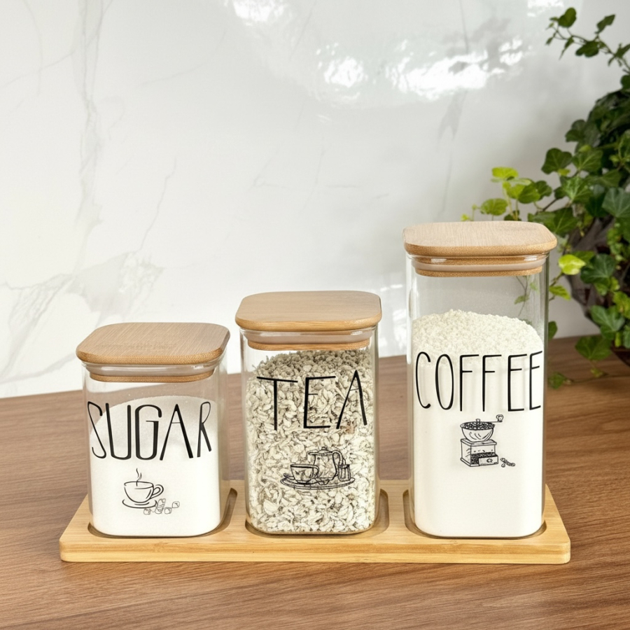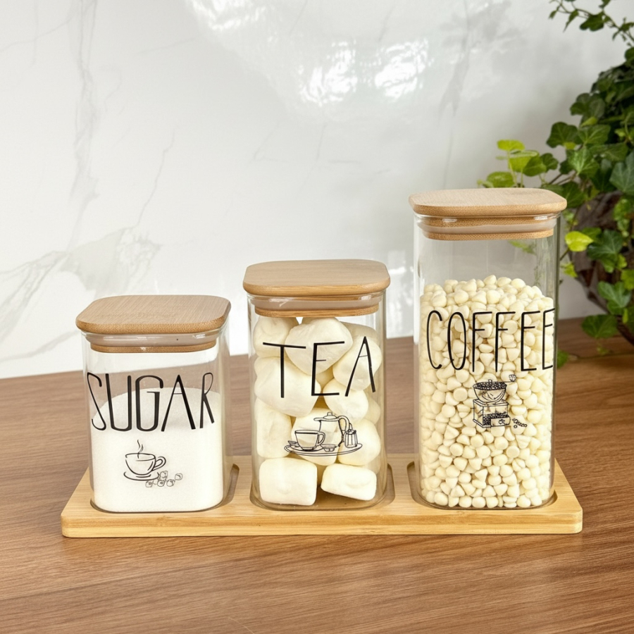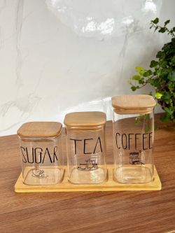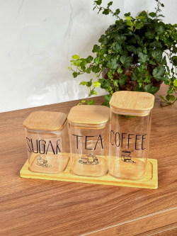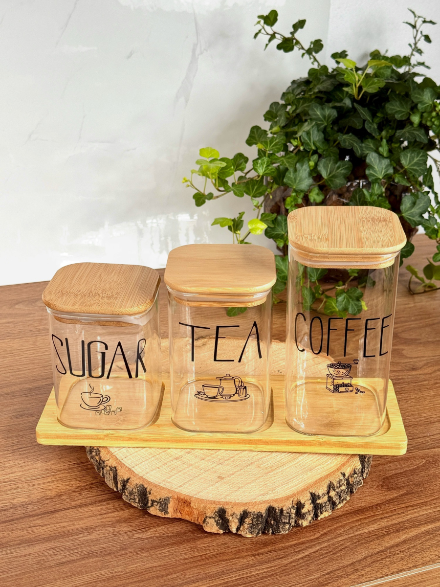 سيت سكر وشايي ثلاثي مربع مع ستاند بامبو