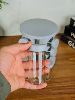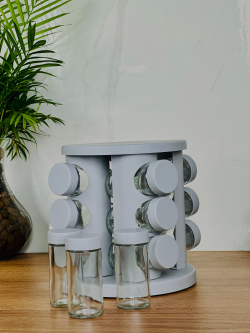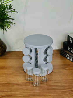 طقم توابل زجاجي 12 عدد مع قاعدة دوارة 360 درجة