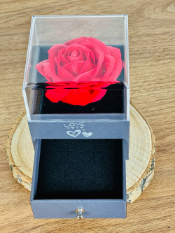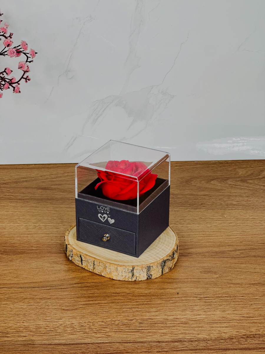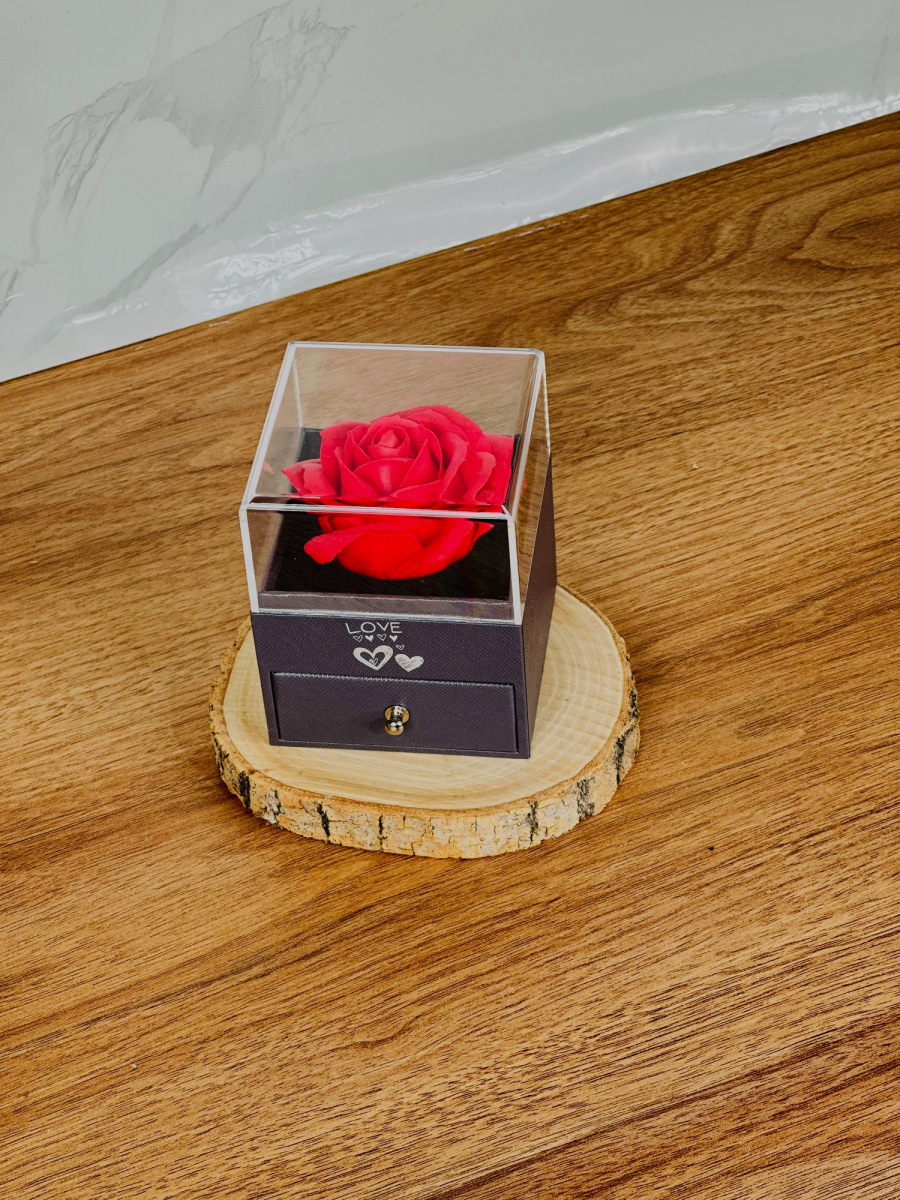 بوکس مجوهرات مربع قبق شفاف داخل ورد 8x10 سم