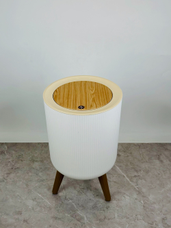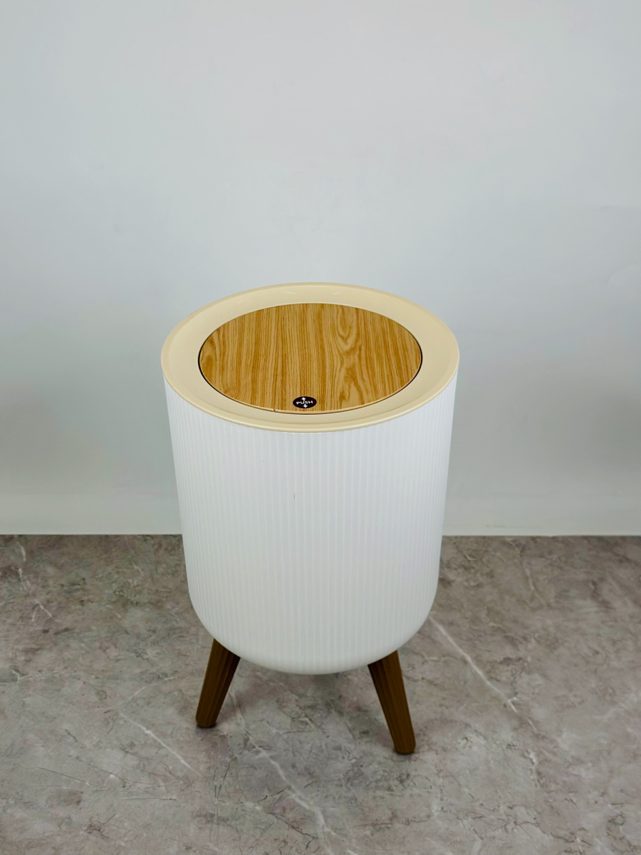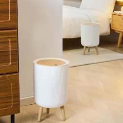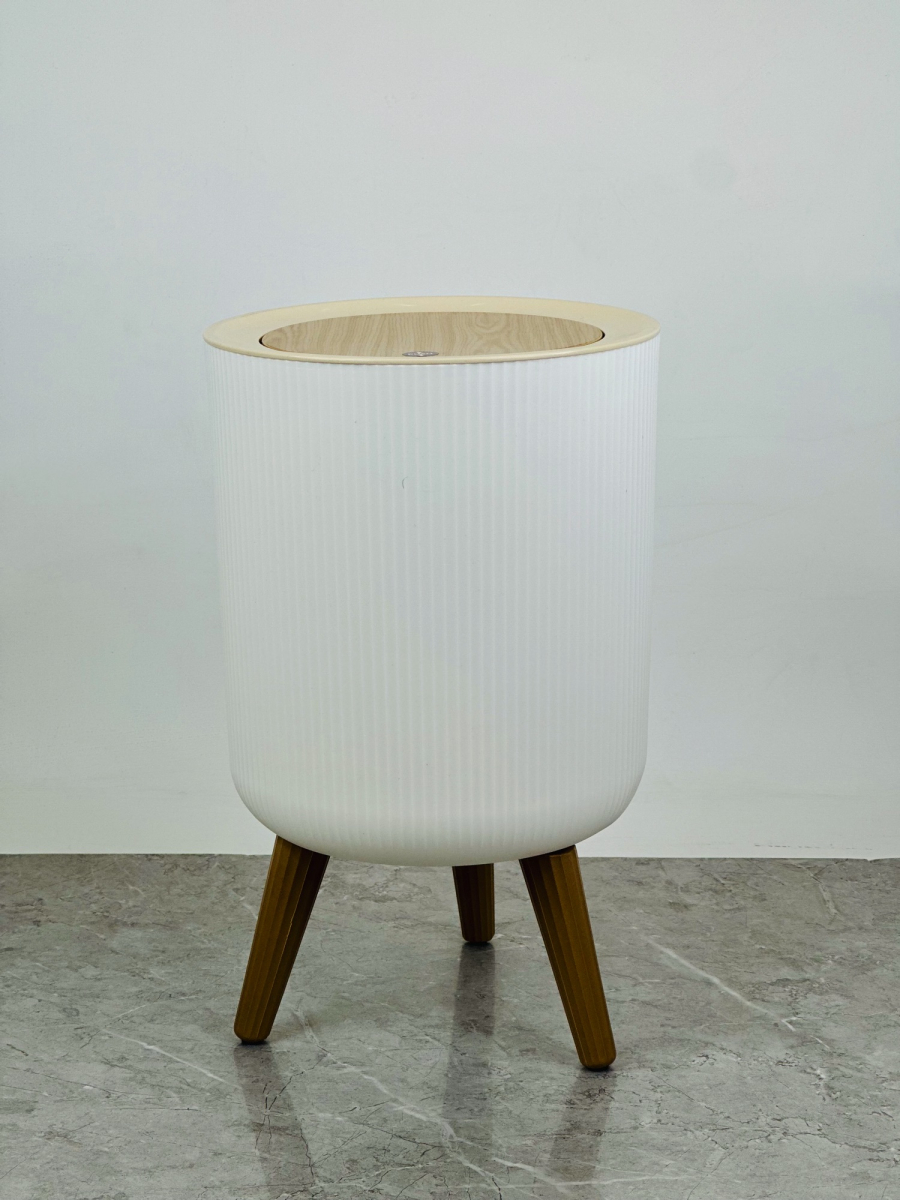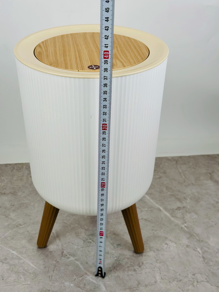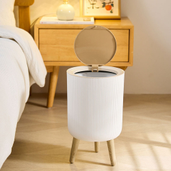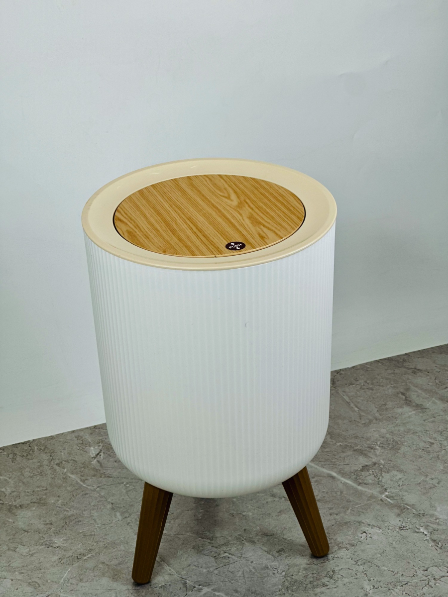 سلة مهملات بلاستيكية دائري مع أرجل وغطاء جديد