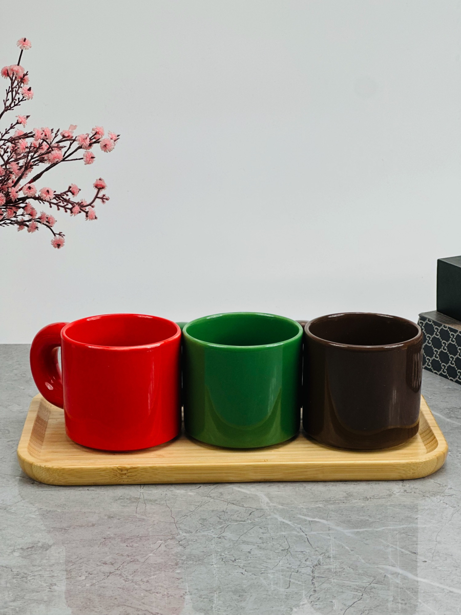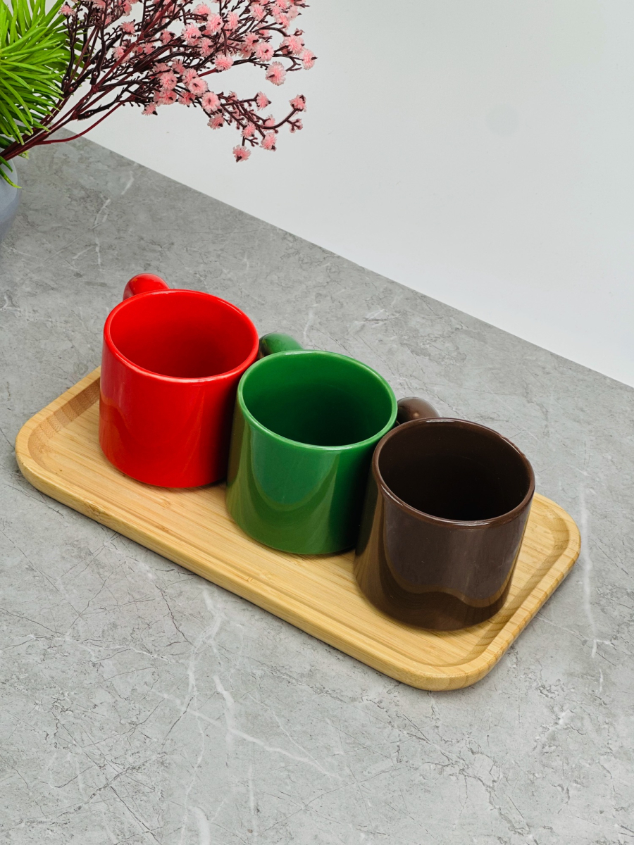 طقم سكر و شايي و قهوه سيراميك و قاعدة بامبو bh-1
