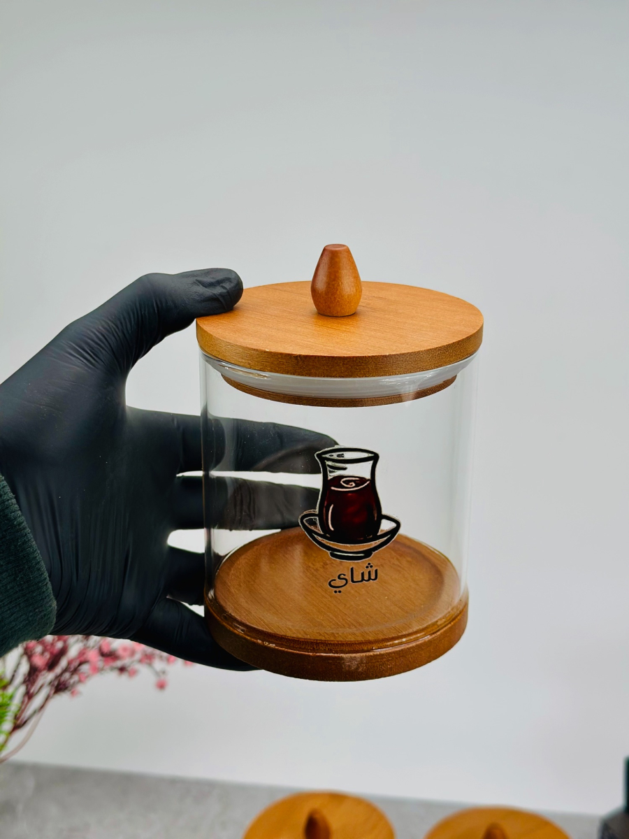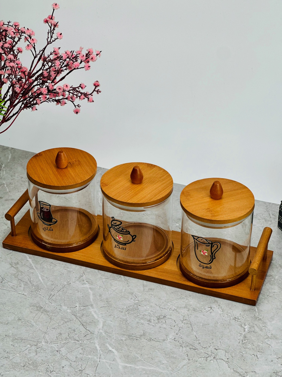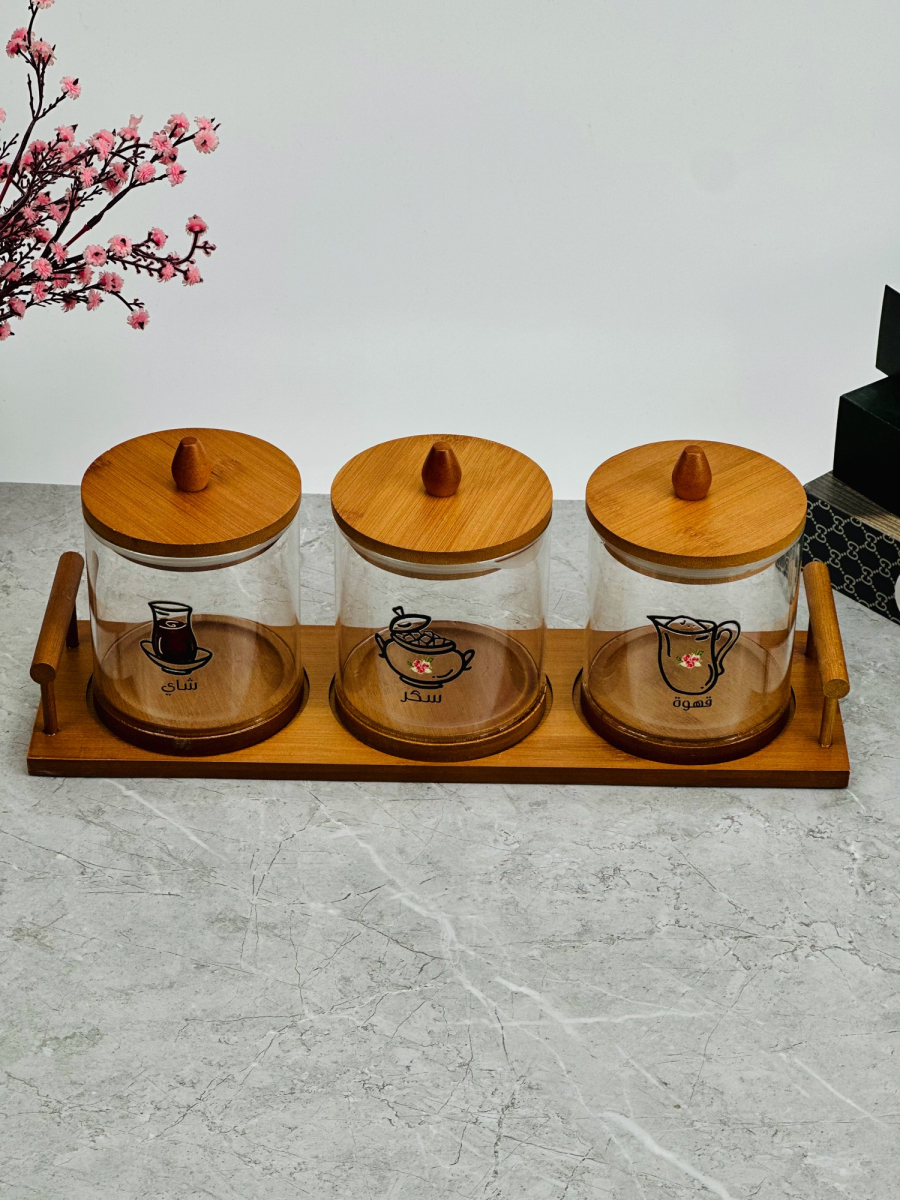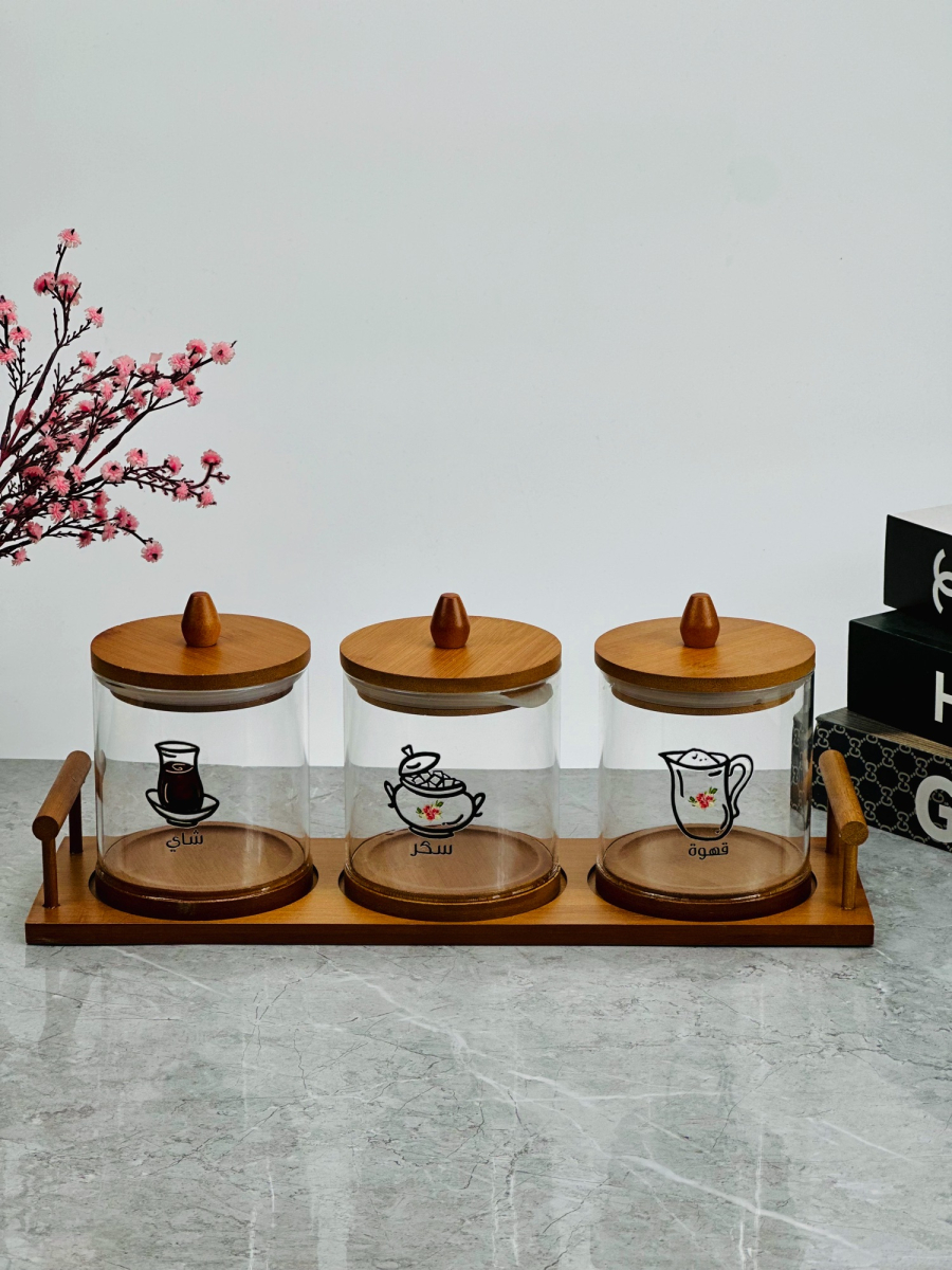 سيت سكر وشايي ثلاثي زجاج مع صورة