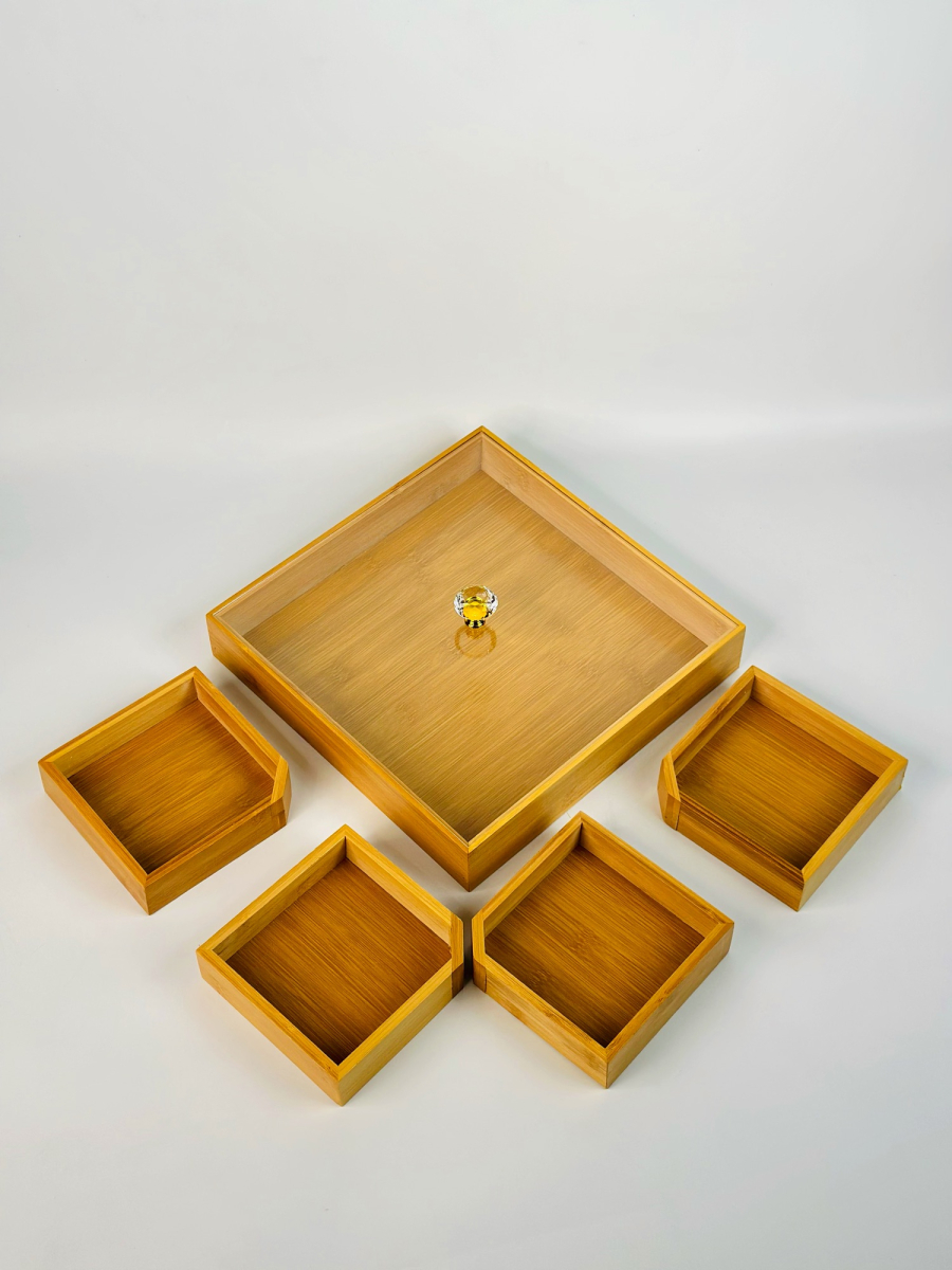 طقم سكر وشايي سيراميك قاعدة بامبو صغير 42